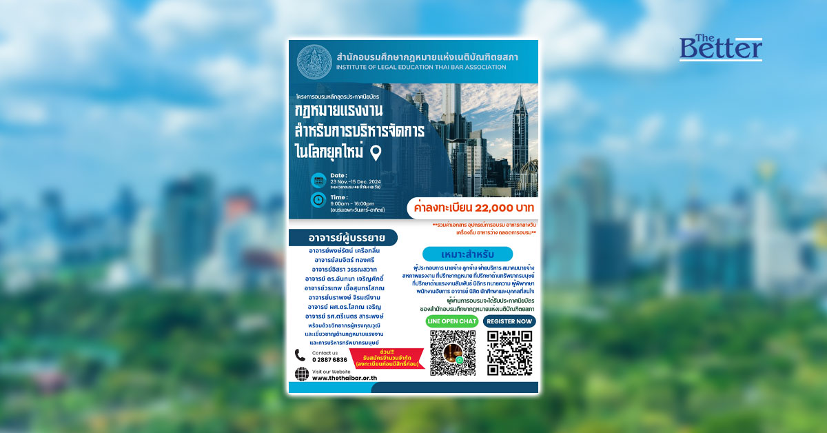 สำนักอบรมศึกษากฎหมายแห่งเนติบัณฑิตยสภา เปิดรับสมัคร ผู้ที่สนใจร่วมโครงการอบรมหลักสูตรประกาศนียบัตร "กฎหมายแรงงานสำหรับการบริหารจัดการในโลกยุคใหม่"