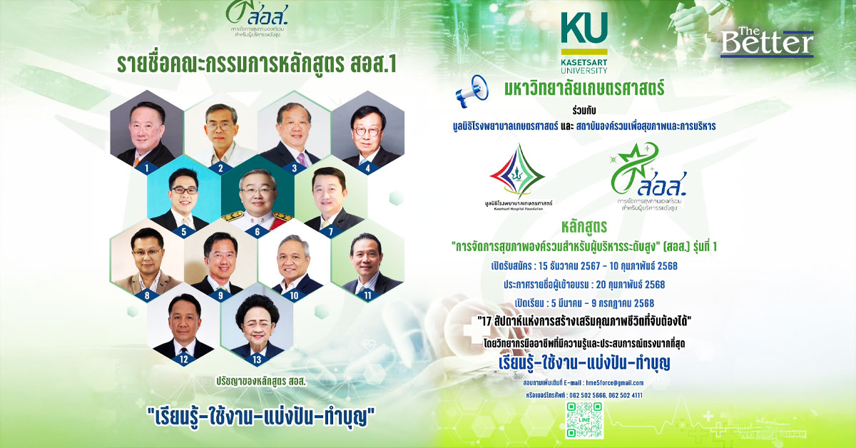 ม.เกษตรฯและมูลนิธิรพ.เกษตรศาสตร์ จับมือสถาบันองค์รวมเพื่อสุขภาพฯ เปิดมหลักสูตรการจัดการสุขภาพองค์รวมสำหรับผู้บริหาร เรียนรู้การดูแลสุขภาพ พร้อมเคล็ดลับลงทุนธุรกิจเพื่อสุขภาพ