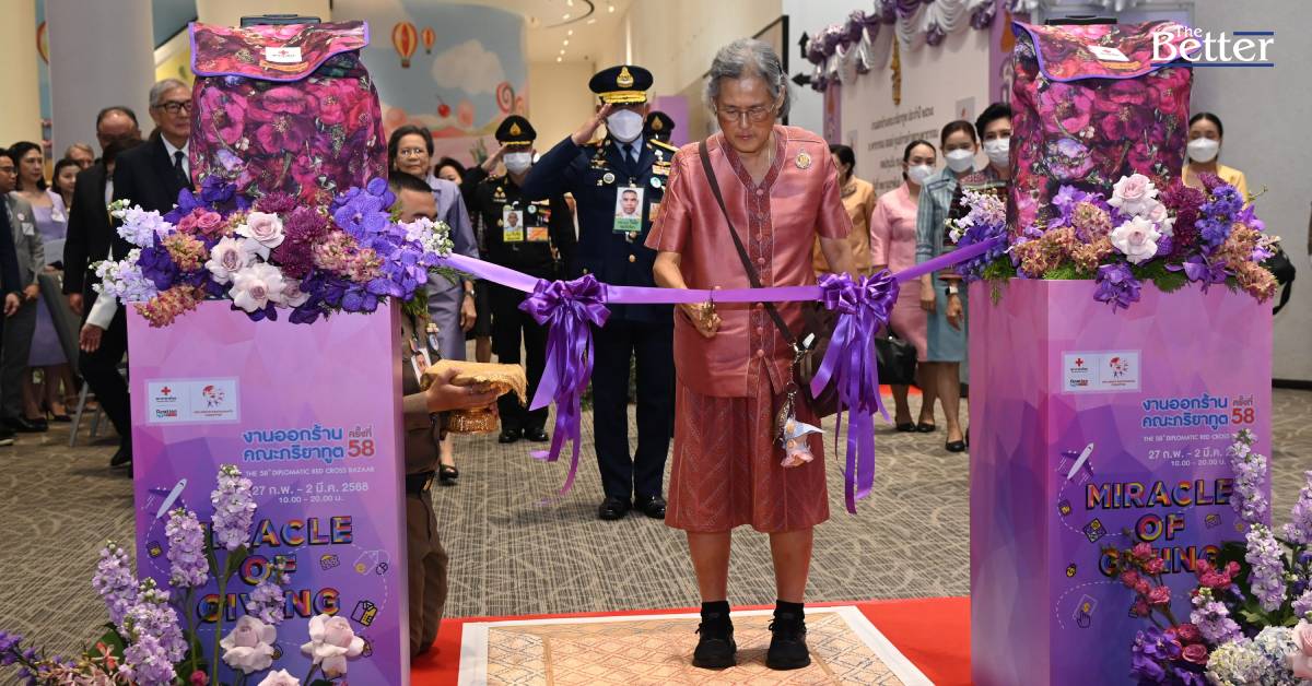 โดยมี นายเตช บุนนาค เลขาธิการสภากาชาดไทย คุณหญิงชฎา วัฒนศิริธรรม เหรัญญิกสภากาชาดไทย, นายขรรค์ ประจวบเหมาะ ผู้อำนวยการสำนักงานจัดหารายได้ สภากาชาดไทย, มาดาม ปรัชญา ซิงห์ ภริยาเอกอัครราชทูตสาธารณรัฐอินเดีย ประจำประเทศไทย และประธานคณะกรรมการจัดงานออกร้านคณะภริยาทูต ประจำปี 2568, นางจันทร์ประภา วิชิตชลชัย รองผู้อำนวยการสำนักงานจัดหารายได้ สภากาชาดไทย และคณะกรรมการจัดงานฯ เฝ้าฯ รับเสด็จ