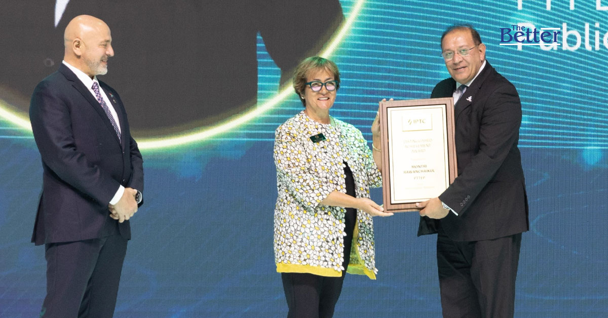 นายมนตรี ลาวัลย์ชัยกุล (ขวา) ประธานเจ้าหน้าที่บริหาร บริษัท ปตท.สำรวจและผลิตปิโตรเลียม จำกัด (มหาชน) หรือ ปตท.สผ. รับมอบรางวัล “IPTC Distinguished Achievement” จาก Dr. Pinar O. Yilmaz (กลาง) IPTC Board Chair ในงานประชุมนานาชาติ “International Petroleum Technology Conference” ครั้งที่ 17 หรือ IPTC 2025 จากบทบาทและความสำเร็จในการส่งเสริมและพัฒนาอุตสาหกรรมพลังงานซึ่งเป็นที่ยอมรับในระดับสากล การมอบรางวัลดังกล่าวจัดขึ้น ณ กรุงกัวลาลัมเปอร์ ประเทศมาเลเซีย