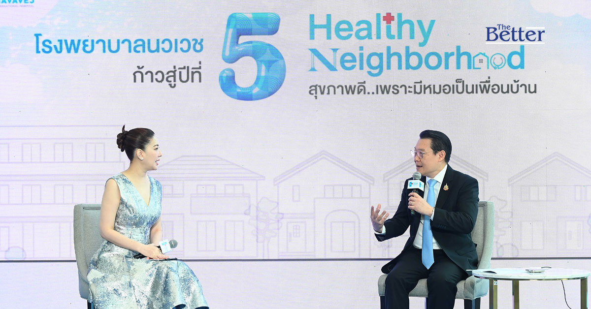ปี 2568 ในโอกาสโรงพยาบาลก้าวสู่ปีที่ 5 ได้ประกาศแคมเปญ “Healthy Neighborhood by Navavej: สุขภาพดีเพราะมีหมอเป็นเพื่อนบ้าน” เพื่อตอกย้ำความพร้อมในการดูแลและส่งมอบบริการด้านสุขภาพและการแพทย์แบบองค์รวมที่เข้าใจผู้ใช้บริการมากขึ้น โดยเฉพาะผู้อยู่อาศัยในพื้นที่ 6 เขตรอบโรงพยาบาล ได้แก่ เขตบึงกุ่ม คลองสามวา ลาดพร้าว คันนายาว บางเขน และบางกะปิ ให้เข้าถึงการรักษาได้รวดเร็วขึ้น ไม่ต้องเสียเวลาเดินทางไปรับการรักษาจากโรงพยาบาลที่ไกลจากที่พักอาศัย ซึ่งจะช่วยเพิ่มความสะดวกสบาย และส่งเสริมให้มีคุณภาพชีวิตที่ดีขึ้น