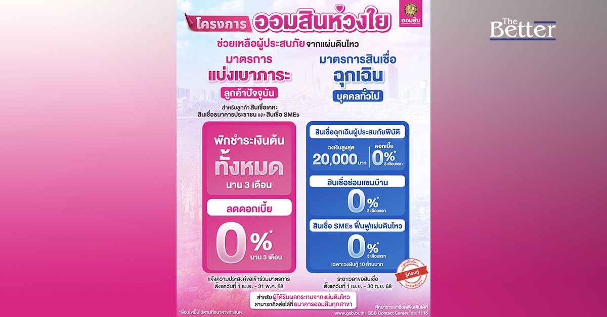 ออมสิน เร่งช่วยเหลือผู้ประสบเหตุแผ่นดินไหวที่ได้รับผลกระทบ ทั้งรายย่อยและผู้ประกอบการ ลูกค้าเดิม“พักจ่ายต้น ลดดอกเบี้ย 0% นาน 3 เดือน” และมอบสินเชื่อฉุกเฉิน ซ่อมบ้าน และ SME