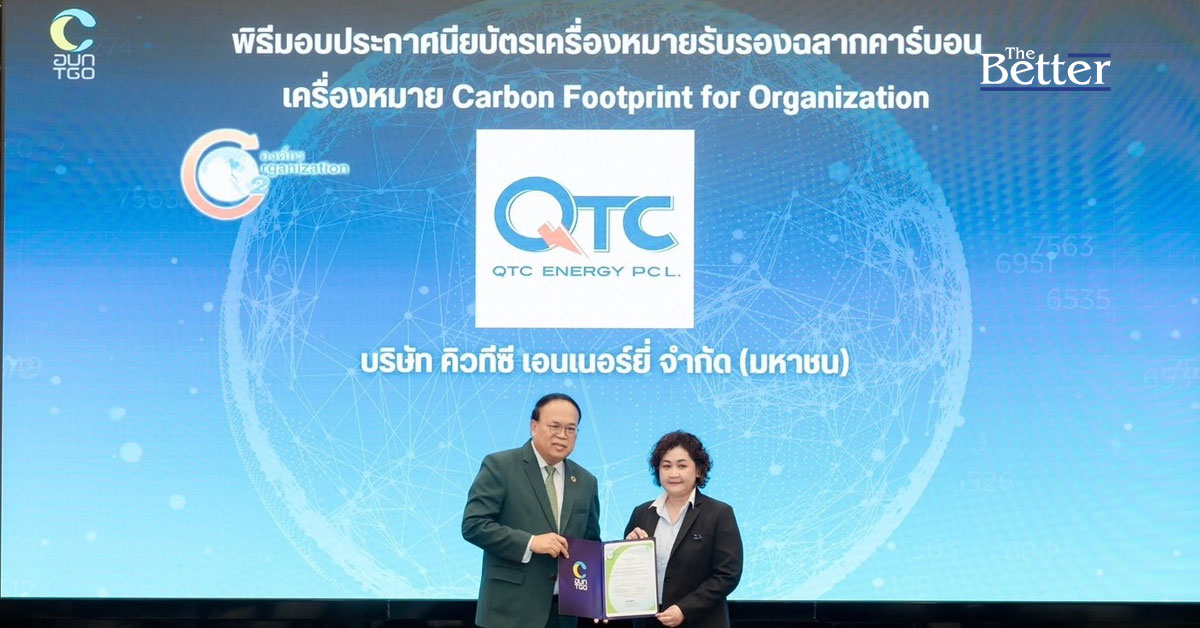 บริษัท คิวทีซี เอนเนอร์ยี่ จำกัด (มหาชน) หรือ QTC ผู้ผลิตและจำหน่ายหม้อแปลงไฟฟ้าตามคำสั่งซื้อของลูกค้า (Made to Order) โดยมี นางสาว สุรีพร มิตรธรรมณะ รองกรรมการผู้จัดการสายงานพัฒนาความยั่งยืนองค์กรและบริหาร เป็นตัวแทนของบริษัทฯ เข้ารับประกาศนียบัตรเครื่องหมายคาร์บอนฟุตพริ้นท์ขององค์กร (Carbon Footprint for Organization หรือ CFO) จาก ดร.วิจารย์ สิมาฉายา ประธานกรรมการองค์การบริหารจัดการก๊าซเรือนกระจก ให้กับองค์กรที่ดำเนินการประเมินปริมาณก๊าซเรือนกระจกจากกิจกรรมต่างๆ ขององค์กร ซึ่งช่วยให้สามารถวางแผนและดำเนินการลดผลกระทบต่อสิ่งแวดล้อมได้อย่างมีประสิทธิภาพ ซึ่งเป็นส่วนหนึ่งในการขับเคลื่อนการลดก๊าซเรือนกระจก และสังคมคาร์บอนต่ำอย่างยั่งยืน เพื่อมุ่งสู่ Net Zero ซึ่งงานดังกล่าวจัดขึ้นโดยองค์การบริหารจัดการก๊าซเรือนกระจก (องค์การมหาชน) หรือ อบก. ณ สถาบันเพื่อการยุติธรรมแห่งประเทศไทย (TIJ)
