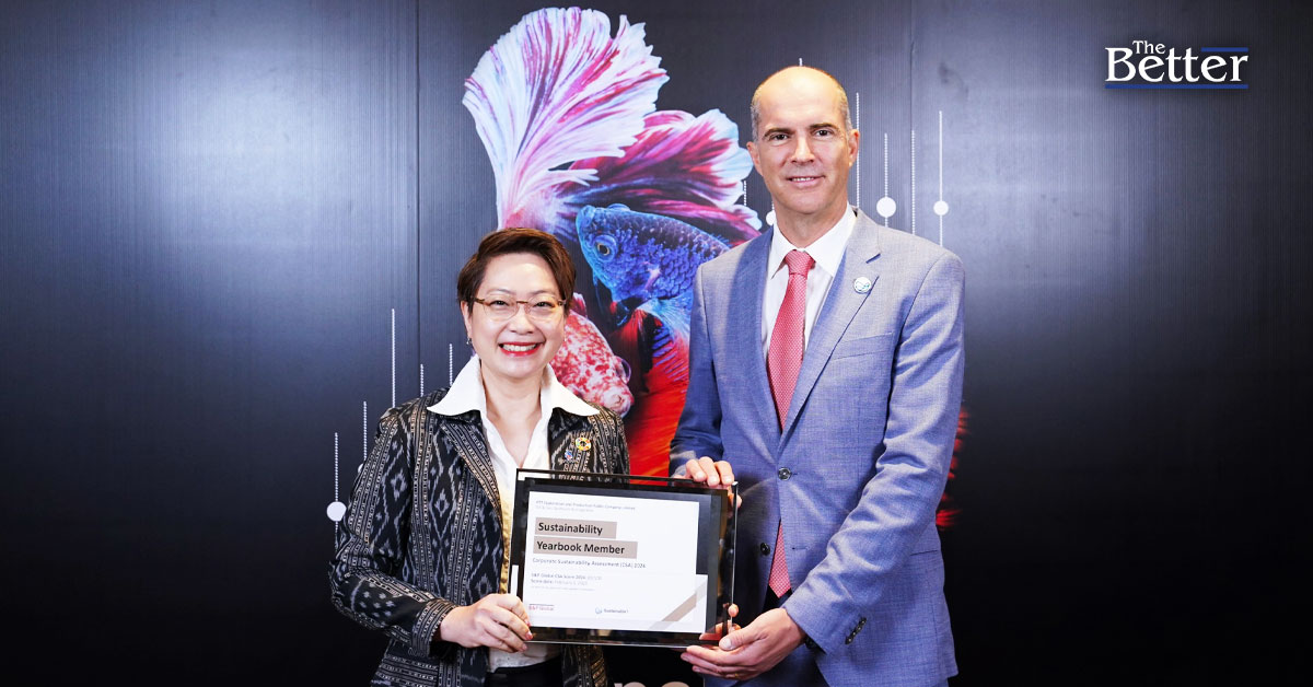 บริษัท ปตท.สำรวจและผลิตปิโตรเลียม จำกัด (มหาชน) หรือ ปตท.สผ. โดยนางสุศมา ปิตากุลดิลก (ซ้าย) ผู้ช่วยกรรมการผู้จัดการใหญ่ สายงานความยั่งยืนและบริหารผู้มีส่วนได้ส่วนเสีย เข้ารับรางวัลจากการที่ ปตท.สผ. ได้รับคัดเลือกให้อยู่ใน Sustainability Yearbook 2025 ของ S&P Global ต่อเนื่องเป็นปีที่ 12 จากนายโรเบิร์ต ดอว์เนา (ขวา) ผู้อำนวยการอาวุโส S&P Global Sustainable1 ซึ่ง ปตท.สผ. มีผลการดำเนินงานด้านความยั่งยืนในระดับ Top 15% ของบริษัทในกลุ่มธุรกิจน้ำมันและก๊าซขั้นต้นและครบวงจรซึ่งเข้าร่วมประเมินทั้งหมด 101 บริษัทจากทั่วโลก
