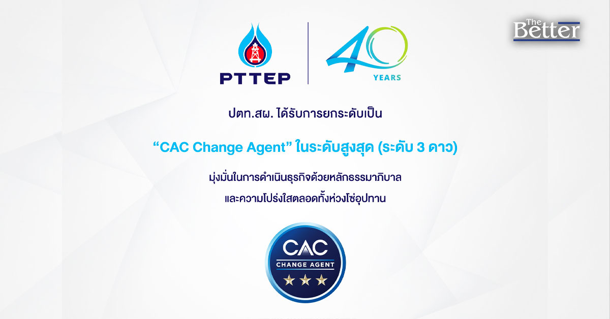 บริษัท ปตท.สำรวจและผลิตปิโตรเลียม จำกัด (มหาชน) หรือ ปตท.สผ. ได้รับการรับรองสถานะ “CAC Change Agent” เป็นระดับสูงสุด (3 ดาว) จากแนวร่วมต่อต้านคอร์รัปชันของภาคเอกชนไทย (Thai Private Sector Collective Action Against Corruption: CAC) ประจำปี2568 การได้รับรองสถานะในครั้งนี้ สะท้อนถึงความมุ่งมั่นของ ปตท.สผ. ในการดำเนินธุรกิจอย่างมีจริยธรรมและโปร่งใส รวมทั้งการส่งเสริมคู่ค้าและพันธมิตรทางธุรกิจให้ร่วมยึดมั่นในหลักธรรมาภิบาลและต่อต้านการทุจริตคอร์รัปชัน เพื่อเสริมสร้างความยั่งยืนในห่วงโซ่อุปทานอย่างเป็นรูปธรรม รับผิดชอบต่อสังคม และสร้างความเชื่อมั่นแก่ผู้มีส่วนได้ส่วนเสียทุกภาคส่วน