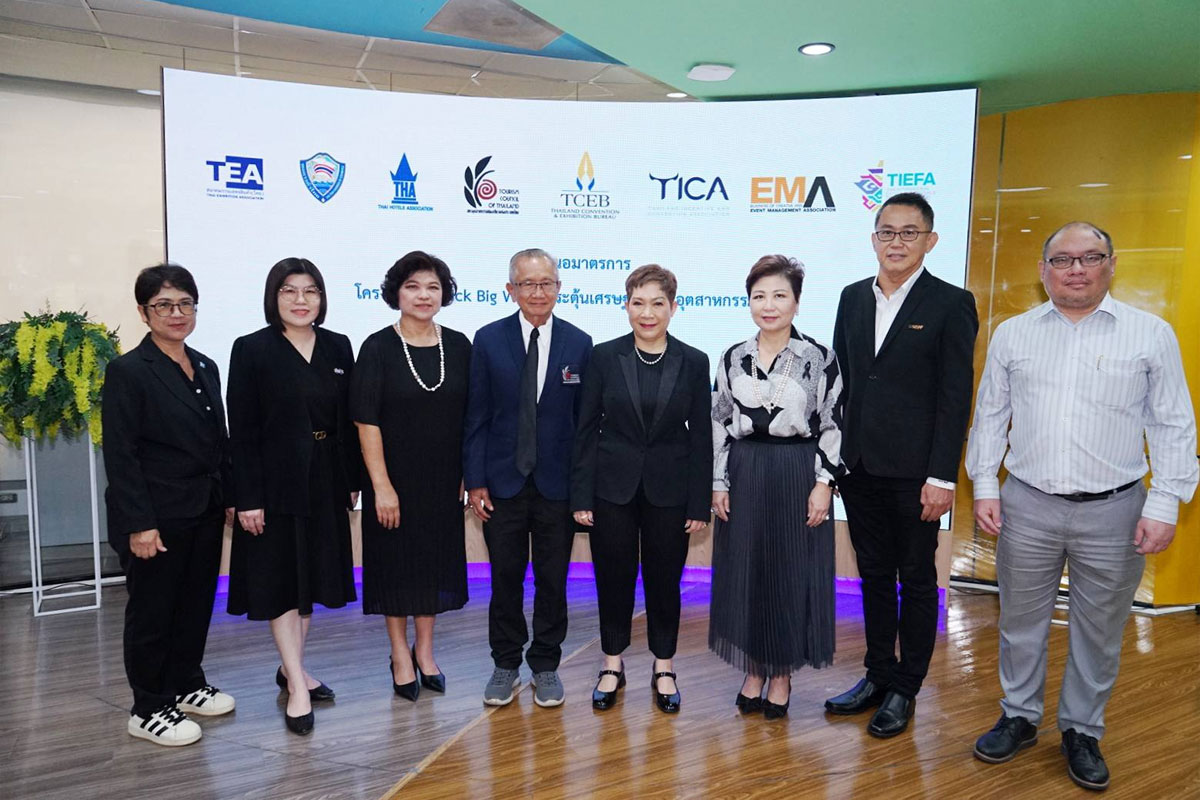 ดร.ศุภวรรณ ตีระรัตน์ ผู้อำนวยการสำนักงานส่งเสริมการจัดประชุมและนิทรรศการ (องค์การมหาชน) หรือ ทีเส็บ (ที่ 5 จากซ้าย) เป็นประธานการประชุมจัดทำมาตรการ “Quick Big Win” เพื่อร่วมขับเคลื่อนนโยบายของรัฐบาลในการกระตุ้นเศรษฐกิจและเสริมศักยภาพอุตสาหกรรมไมซ์ของประเทศ โดยบูรณาการความร่วมมือกับภาคเอกชนในอุตสาหกรรมไมซ์ ได้แก่ สมาคมการแสดงสินค้า (ไทย) สมาคมส่งเสริมการประชุมนานาชาติ (ไทย) สมาคมโรงแรมไทย สมาคมการค้าส่งเสริมการจัดมหกรรมและเทศกาลนานาชาติไทย สมาคมธุรกิจสร้างสรรค์การจัดงาน สภาอุตสาหกรรมท่องเที่ยวแห่งประเทศไทย หอการค้าไทยและสภาหอการค้าแห่งประเทศไทย ร่วมหาแนวทางมาตรการเร่งด่วน Quick Big Win เพื่อนำเสนอต่อรัฐบาล เป็นการฟื้นฟูเศรษฐกิจผ่านอุตสาหกรรมไมซ์