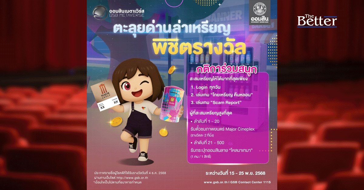 เปิดโลกใหม่ใน "ออมสินเมตาเวิร์ส" พบความสนุกสุดมันส์กับการล่าเหรียญพิชิตรางวัลรวมกว่า 500 รางวัล! แค่ลงทะเบียนและร่วมเล่นเกมใน GSB METAVERSE วันนี้ ถึง 25 พฤศจิกายน 2568 ลุ้นรับรางวัลใหญ่!