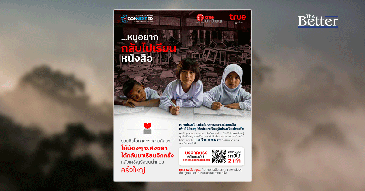 คืนอนาคตที่สดใส พาน้องๆ กลับไปเรียนหนังสือกันอีกครั้ง…ทรู คอร์ปอเรชั่น x มูลนิธิสานอนาคตการศึกษา คอนเน็กซ์อีดี ชวนระดมทุนเพื่อการศึกษา ฟื้นฟูโรงเรียน จ.สงขลา จากวิกฤตน้ำท่วม ลดหย่อนภาษีได้ 2 เท่า