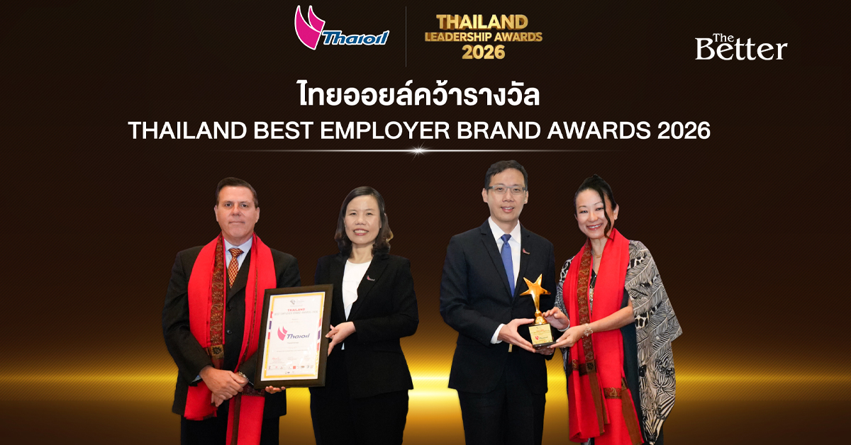 บริษัท ไทยออยล์ จำกัด (มหาชน) โดยคุณณัฐพล มีฤทธิ์ รองกรรมการผู้จัดการใหญ่ ด้านบริหารศักยภาพองค์กร พร้อมด้วย คุณจิดาภา สุนทรารัตน์พงษ์ ผู้จัดการฝ่ายบริหารจัดการทรัพยากรบุคคลและองค์กร เป็นผู้แทนบริษัทฯ เข้ารับรางวัล Thailand Best Employer Brand Awards 2026 ซึ่งได้รับการรับรองจาก CHRO Asia และ สหพันธ์ผู้เชี่ยวชาญด้านทรัพยากรบุคคลโลก (World Federation of HR Professionals) ณ โรงแรม ดิ แอทธินี โฮเทล แบงค็อก, อะ ลักซ์ชูรี คอลเล็คชั่น กรุงเทพฯ