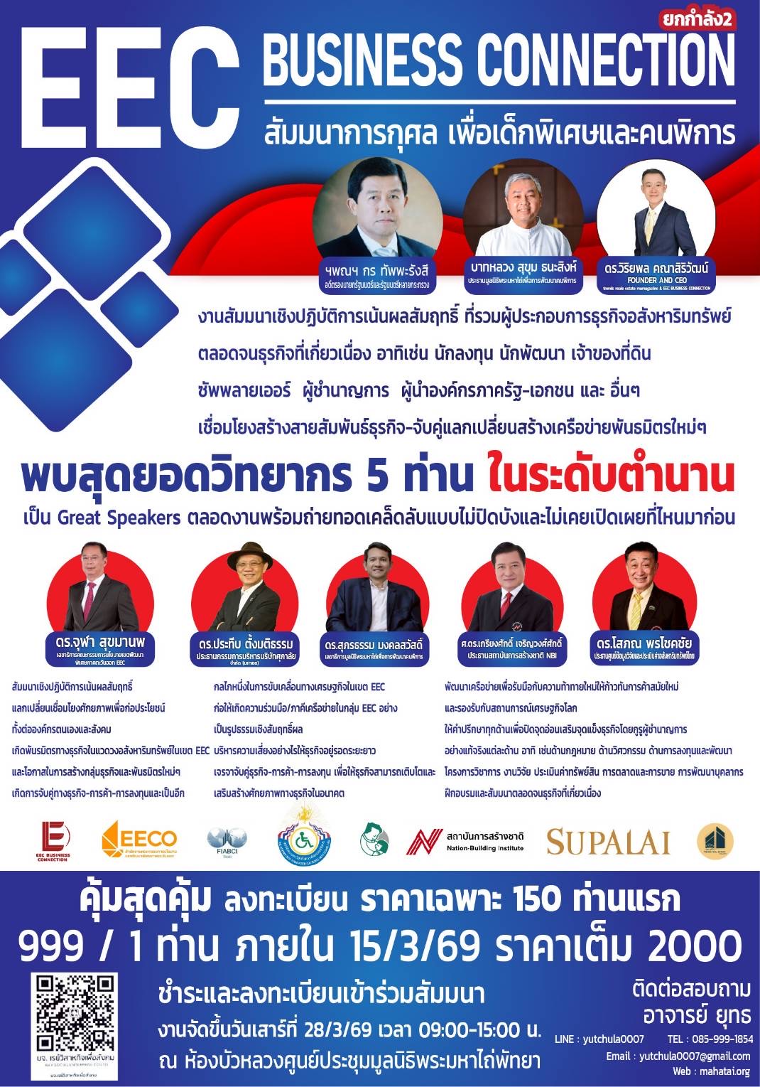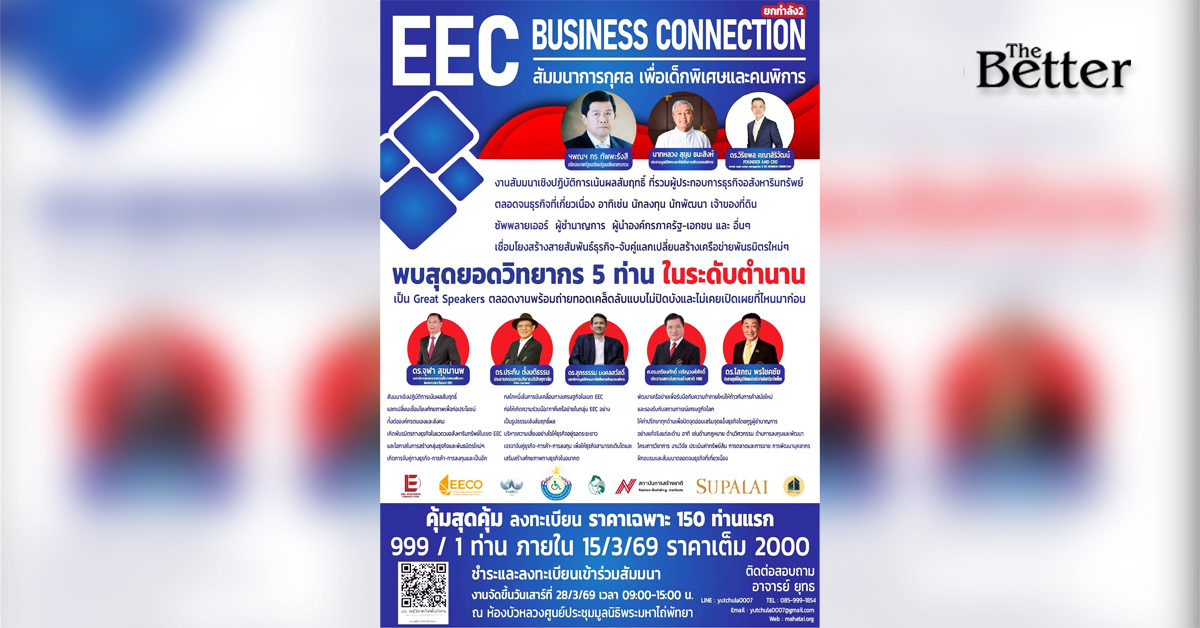 ดร.วิริยพล คณาสิริวัฒน์ ประธานเจ้าหน้าที่บริหารนิตยสารออนไลน์ 3 ภาษา ไทย จีน อังกฤษ ในนาม“TRENDS REAL ESTATE MAGAZINE” และประธาน “EEC BUSINESS CONNECTION” ที่ปรึกษามูลนิธิพระมหาไถ่เพื่อการพัฒนาคนพิการ เตรียมจัดงานสัมมนาการกุศลเพื่อเด็กพิเศษและคนพิการ ภายใต้ชื่องาน "EEC BUSINESS CONNECTION ยกกำลัง 2" ในวันเสาร์ที่ 28 มีนาคม 2569 ณ.ห้องบัวหลวง ศูนย์ประชุมมูลนิธิพระมหาไถ่ พัทยา จ.ชลบุรี