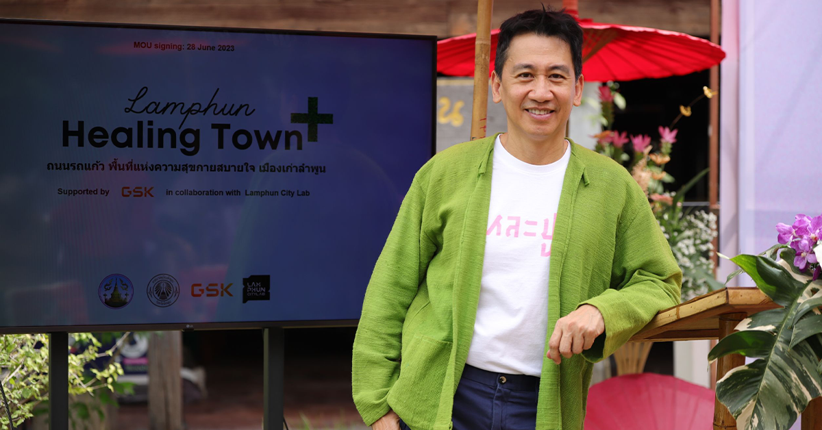จังหวัดลำพูนมีการดำเนินนโยบายแผนภูมิสังคมเมืองเก่าลำพูนของจังหวัด ซึ่งจาก 1 ใน 8 นโยบาย คือเรื่อง การขับเคลื่อนเมืองไร้มลพิษ สวนป่าในเมือง และพื้นที่สาธารณะแก่คนทุกวัย เพื่อเพิ่มพื้นที่ที่เป็นมิตรต่อสิ่งแวดล้อมและเติมเต็มความสุขกายสบายใจให้แก่ผู้คนในลำพูน ซึ่งสอดคล้องกับนโยบายด้านการดูแลสิ่งแวดล้อมและสังคมของ GSK เราจึงขอเป็นส่วนหนึ่งในการสนับสนุนการดำเนินงานของจังหวัดและชุมชนชาวลำพูน โดยได้ร่วมกับลำพูนซิตี้ แลป ริเริ่มโครงการต้นแบบ ลำพูน สุขก๋าย สบายใจ๋ (Lamphun Healing Town) เพื่อสนับสนุนการดูแลด้านสิ่งแวดล้อมและสังคมของลำพูน โดย GSK จะช่วยสนับสนุนลำพูนซิตี้ แลป ในการดำเนินโครงการ Lamphun Healing Town เพื่อปรับปรุงทุกองค์ประกอบของ ถ.รถแก้ว เมืองลำพูน ทั้งด้านสิ่งแวดล้อม โดยเพิ่มพื้นที่สีเขียว สร้างความร่มรื่น จัดการระบบแสงสว่าง ลดมลพิษทางอากาศ เพิ่มพื้นที่ออกกำลังกาย ร่มรื่น มีร่มเงา หายใจสะดวก รวมทั้งการประสานกับเครือข่ายคลินิกโรคหืดและปอดอุดกั้นเรื้อรังแบบง่าย (EACC) และสมาคมเครือข่ายโรคไม่ติดต่อไทย (Thai NCD) เพื่อหารือร่วมหน่วยงานท้องถิ่นในการประเมินผลกระทบจากมลพิษทางอากาศต่อไป”