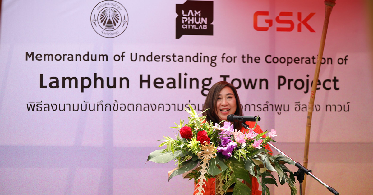 บริษัท แกล็กโซสมิทไคล์น (ประเทศไทย) จำกัด (GSK) บริษัทด้านชีวเภสัช (Biopharma) ที่เป็นผู้นำในการค้นคว้าและวิจัยยาและวัคซีนนวัตกรรมระดับโลก โดยเภสัชกรหญิงจิราภา เปรมปลื้มจิตต์ รักษาการกรรมการผู้จัดการ และบริษัท ลำพูน ซิตี้ แลป จำกัด โดย นายไชยยงค์ รัตนอังกูร ผู้อำนวยการ ร่วมลงนามบันทึกความร่วมมือ (MOU) ระหว่างองค์กรพันธมิตร ในการขับเคลื่อนโครงการต้นแบบ “ลำพูน สุขก๋าย สบายใจ๋” (Lamphun Healing Town) พัฒนาพื้นที่แห่งความสุขกายสบายใจ ถนนรถแก้ว ย่านเมืองเก่าลำพูน