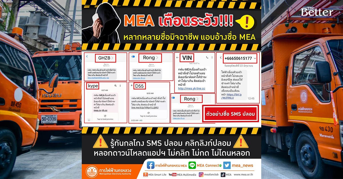 MEA เตือนภัย! มิจฉาชีพแอบอ้างหลอกลวงประชาชน หลอกเก็บเงินค่าบริการต่าง ๆ นอกสถานที่ทำการ MEA รวมถึงเพื่อล่อลวงให้รับบริการผ่านระบบออนไลน์ หรือคลิกลิงก์ต่าง ๆ