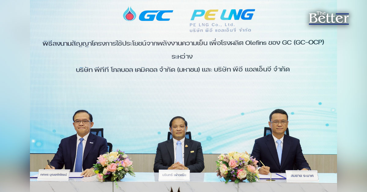นายนรินทร์ เผ่าวณิช ประธานกรรมการ บริษัท พีอี แอลเอ็นจี จำกัด เปิดเผยว่า ได้ร่วมลงนามระหว่างบริษัท พีทีที โกลบอล เคมิคอล จำกัด (มหาชน) หรือ GC และ บริษัท พีอี แอลเอ็นจี จำกัด หรือ PE LNG ซึ่งเป็นธุรกิจร่วมทุนระหว่าง บริษัท พีทีที แอลเอ็นจี จำกัด (PTTLNG) และการไฟฟ้าฝ่ายผลิตแห่งประเทศไทย (กฟผ.) ในสัญญาความร่วมมือโครงการใช้ประโยชน์จากพลังงานความเย็นของก๊าซธรรมชาติเหลว (LNG) สำหรับโรงผลิตโอเลฟินส์ของ GC ซึ่งจะช่วยเพิ่ฟมประสิทธิภาพด้านพลังงานและลดการปล่อยก๊าซเรือนกระจกในกระบวนการผลิตอย่างเป็นรูปธรรม