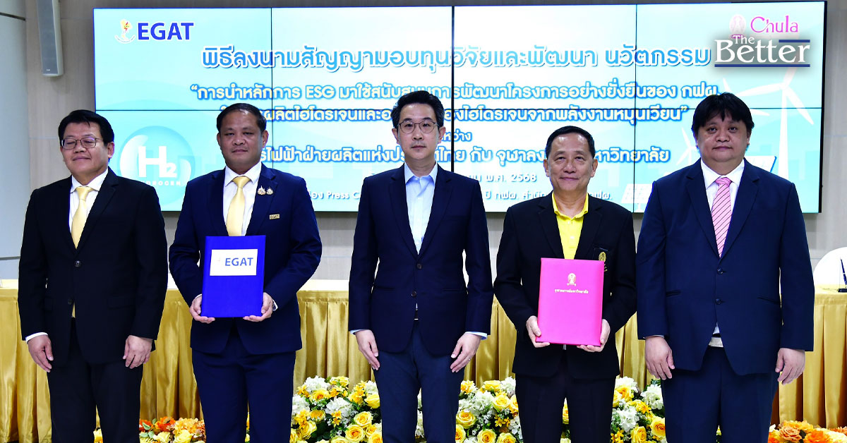 กฟผ.เอ็มโอยู ศูนย์วิชาการจุฬาฯมอบทุนวิจัยพัฒนาการผลิตไฮโดรเจน นำหลัก ESG มาใช้ต่อยอดสู่การใช้ประโยชน์จริงในการขับเคลื่อนพลังงานสะอาดและการพัฒนาที่ยั่งยืนของประเทศ