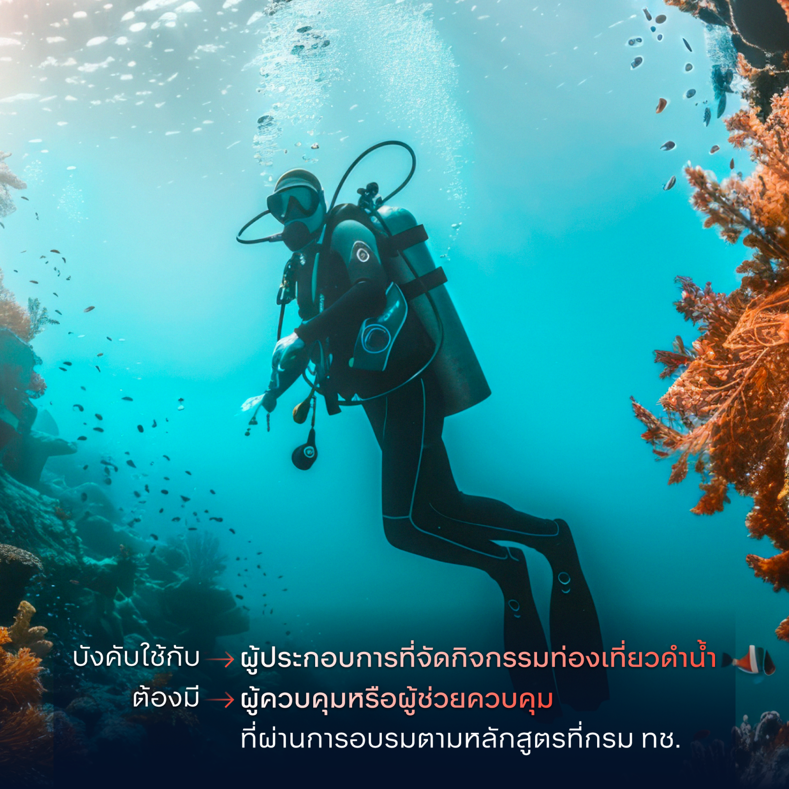 ✅ ทุกกิจกรรมดำน้ำต้องมี ผู้ควบคุมหรือผู้ช่วยผู้ควบคุม คอยดูแล