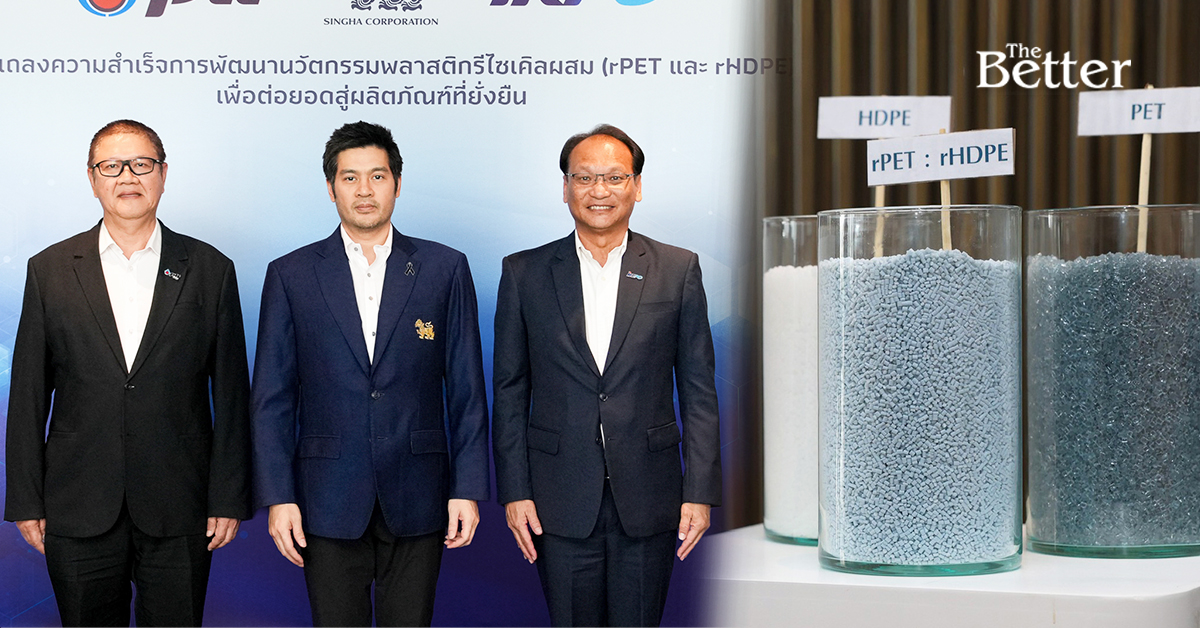 บุญรอดฯ - ปตท. - ไออาร์พีซี โชว์ผลสำเร็จคิดค้นสูตรรีไซเคิลพลาสติก rPET + rHDPE เดินหน้าพัฒนาสู่การใช้งานจริง ต่อยอดเศรษฐกิจหมุนเวียน