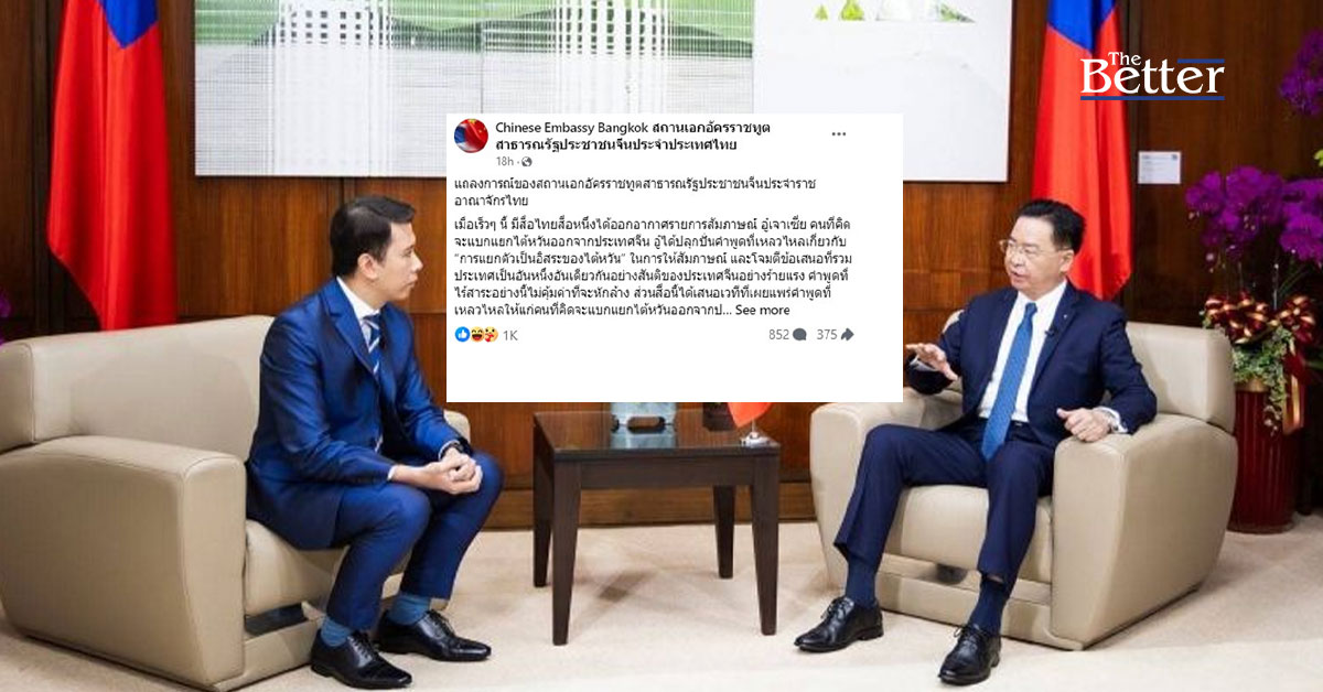 กองเชียร์ไต้หวันถล่มเพจสถานทูตจีนในไทย หลังติงสื่อสัมภาษณ์รัฐมนตรีไต้หวัน