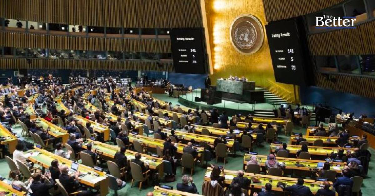 อย่างไรก็ตามแม้มติดังกล่าวจะได้รับคะแนนเสียงอย่างท้วมท้น แต่ชาติที่งดออกเสียงจำนวน 32 ประเทศ หนึ่งในนั้นคือ จีน อินเดีย อิหร่าน และแอฟริกาใต้ ขณะที่ประเทศโหวติไม่เห็นด้วยคือ รัสเซีย เบลารุส เกาหลีเหนือ เอริเทรีย ซีเรีย มาลี นิการากัว ซึ่งล้วนเป็นพันธมิตรที่ใกล้ชิดรัสเซียทั้งสิ้น