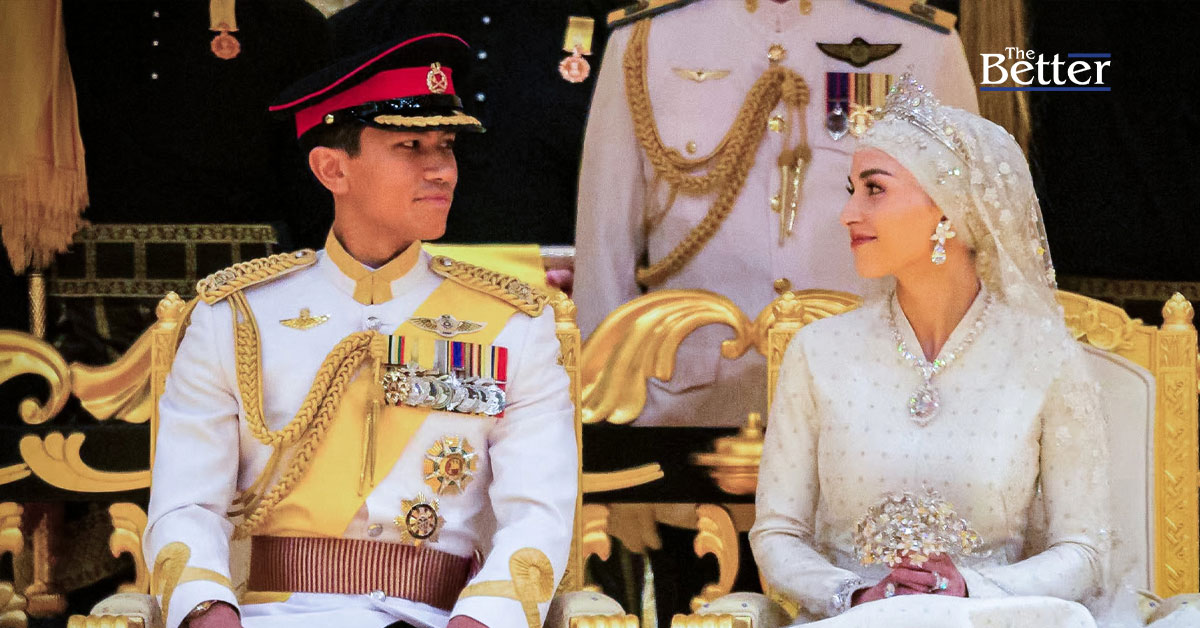 เจ้าชายอับดุล มาตีน พระชนมายุ 32 ปี ทรงสวมชุดพิธีการ ในขณะที่เจ้าสาววัย 29 ปีของพระองค์สวมชุดยาวสีขาวและประดับเพชรพลอยเป็นประกาย เจิดจรัสในงานอันสมพระเกียรติที่พระราชวังอิสตานา นูรุล อิมานอันกว้างใหญ่