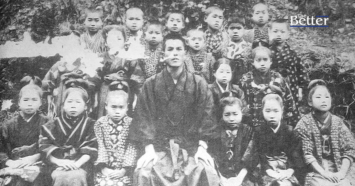 Photo - ภาพถ่ายของครูและนักเรียนในหมู่บ้านอินุนากิ (หมู่บ้านจริง) ถ่ายเมื่อปี ค.ศ. 1919 จากรายงานของกรรมการการศึกษาจังหวัดฟุกุโอกะ