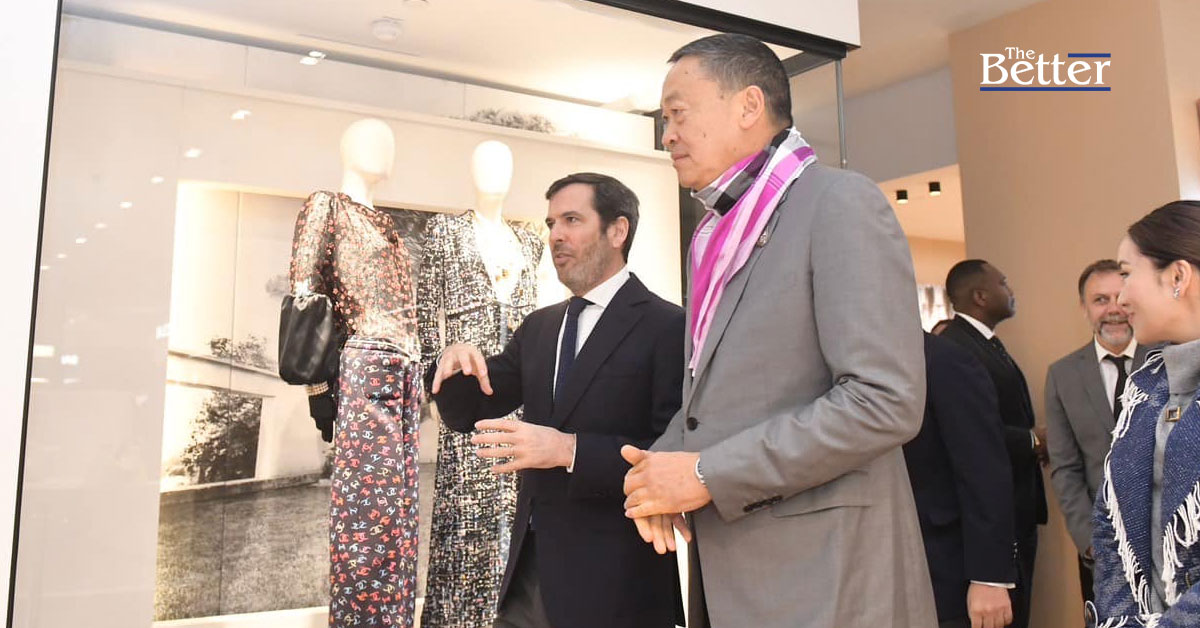 นายกฯ บอกไว้ตอนที่ไปพบกับเจ้าของกลุ่ม LVMH ว่า "คิดไว้ตั้งแต่ตอนลงพื้นที่ไปภาคอีสาน และภาคใต้ ว่าอยากเอาผ้าไทยและวัตถุดิบอื่น ๆ ของไทยที่มีเอกลักษณ์เฉพาะตัว อย่าง ผ้าครามสกล ผ้าขาวม้า อัญมณีไทย เครื่องจักรสาน และเครื่องหอมไทย มานำเสนอเป็นวัตถุดิบในการผลิตสินค้าของแบรนด์ดัง ผมจึงตั้งใจใส่ผ้าขาวม้า จ.นครพนม เป็นผ้าพันคอ มาพบเพื่อแลกเปลี่ยนพูดคุยถึงเทรนด์ดีไซน์ระดับโลกกับเอกชนรายใหญ่ของอุตสาหกรรมแฟชั่นฝรั่งเศสครับ"