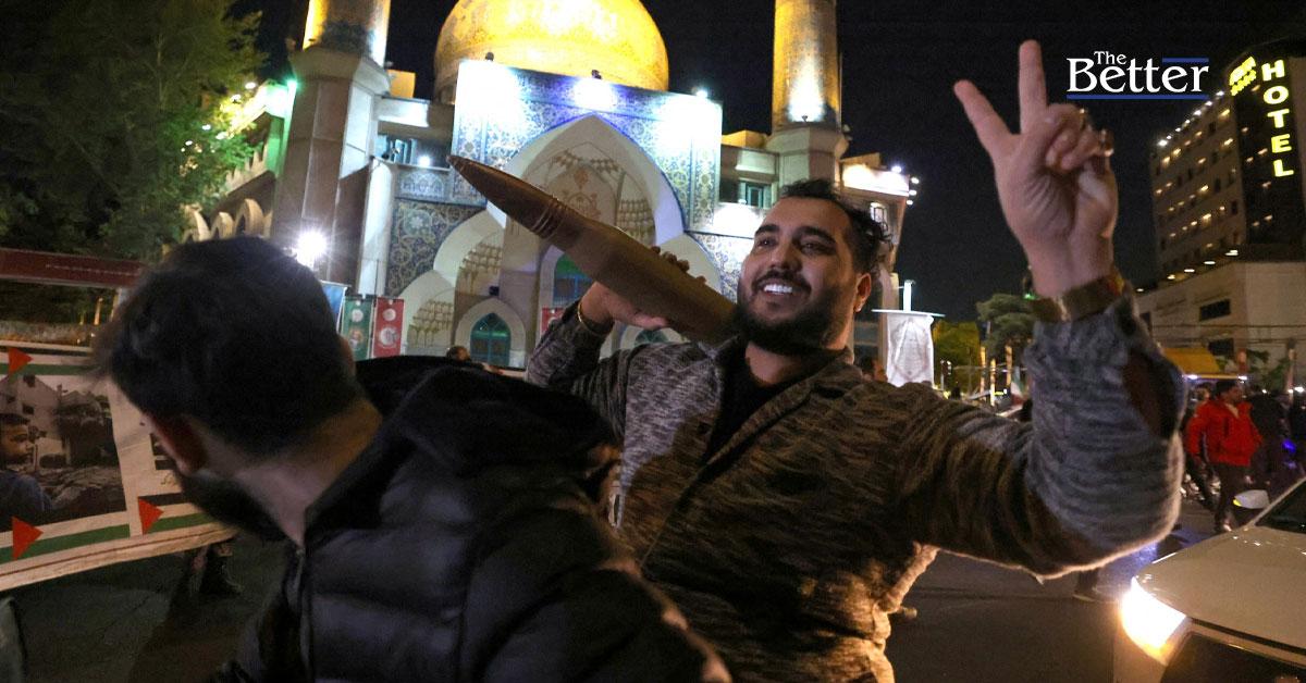 Photo - ชาวอิหร่านถือแบบจำลองกระสุนปืนในขณะที่คนอื่นๆ รวมตัวกันที่จัตุรัสปาเลสไตน์ในกรุงเตหะรานเมื่อวันที่ 14 เมษายน พ.ศ. 2567 หลังจากที่อิหร่านส่งโดรนและขีปนาวุธโจมตีอิสราเอล หน่วยพิทักษ์การปฏิวัติของอิหร่านยืนยันเมื่อเช้าวันที่ 14 เมษายน พ.ศ. 2567 ว่ามีการใช้โดรนและขีปนาวุธโจมตีอิสราเอลเพื่อตอบโต้เหตุโจมตีสถานกงสุลอิหร่านในกรุงดามัสกัสด้วยโดรนซึ่งมีผู้เสียชีวิตเมื่อวันที่ 1 เมษายน (ภาพโดย ATTA KENARE / AFP)