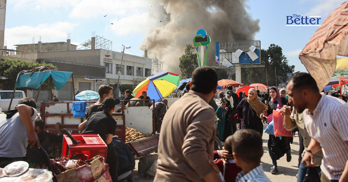 TOPSHOT - ชาวปาเลสไตน์มองควันที่ลอยฟุ้งกระจายในระหว่างการทิ้งระเบิดของอิสราเอลที่ตลาดฟิราสในเมืองกาซาเมื่อวันที่ 11 เมษายน 2024 ท่ามกลางความขัดแย้งที่ดำเนินอยู่ระหว่างอิสราเอลและกลุ่มฮามาสปาเลสไตน์ (Photo by AFP)
