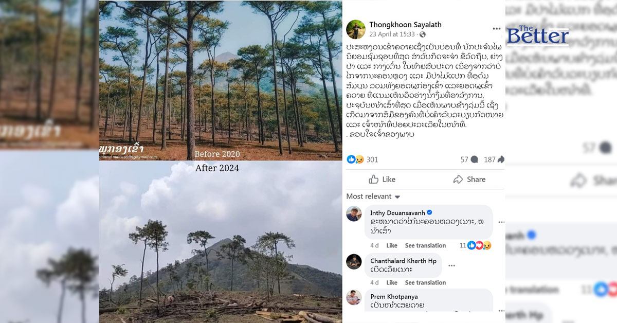 ทั้งนี้ จากการรายงานของ The Laotian Times สื่อภาษาอังกฤษในลาวระบุว่า "ในปี 1940 (พ.ศ. 2483) ประเทศลาวมีป่าไม้ปกคลุมมากกว่าร้อยละ 70 อย่างไรก็ตาม ในปัจจุบัน มีเพียงร้อยละ 40 ของพื้นที่ป่าที่เหลืออยู่ และสถานการณ์ยังคงเลวร้ายลงเนื่องจากปัจจัยต่างๆ เช่น การพัฒนาโครงสร้างพื้นฐาน การเปลี่ยนพื้นที่ป่าให้เป็นเขตอุตสาหกรรม การเผาป่าเพื่อทำเกษตรกรรม และการตัดไม้อย่างดุเดือด"