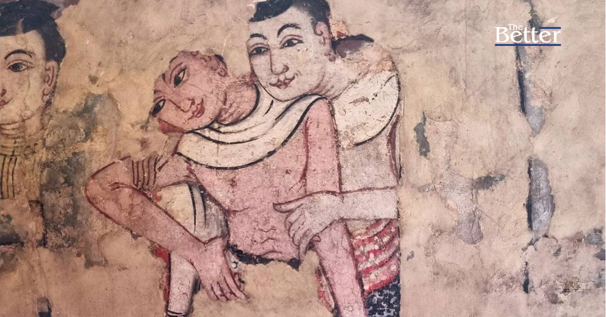 - ภาพถ่ายโดยผู้เขียน จากจิตรกรรมฝาผนังวิหารลายคำ วัดพระสิงห์ เมืองเชียงใหม่ เป็นภาพหนุ่ม "ลาวพุงดำ" หรือชาวล้านนากำลังแนบชิดกัน