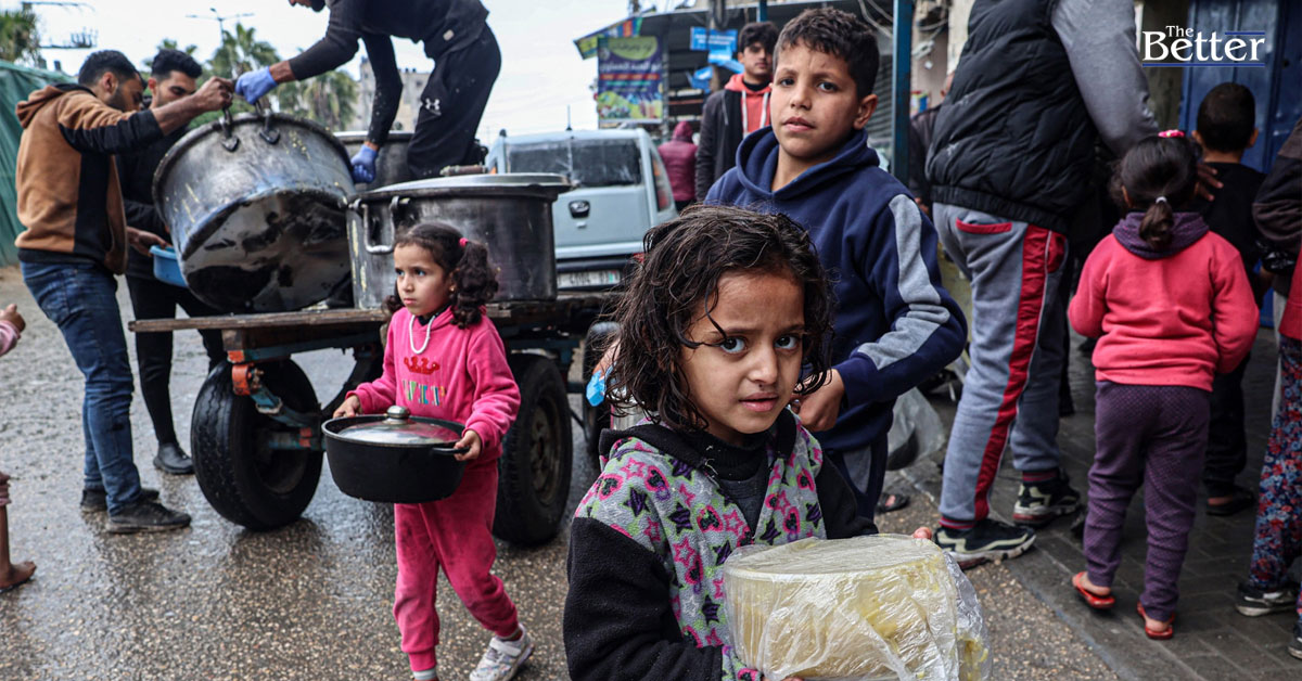 Photo - เด็กๆ ชาวปาเลสไตน์ผู้พลัดถิ่นถือซุป ซึ่งแจกจ่ายโดยอาสาสมัครในเมืองราฟาห์ ทางตอนใต้ของฉนวนกาซาเมื่อวันที่ 18 กุมภาพันธ์ 2024 (ภาพโดย SAID KHATIB / AFP)