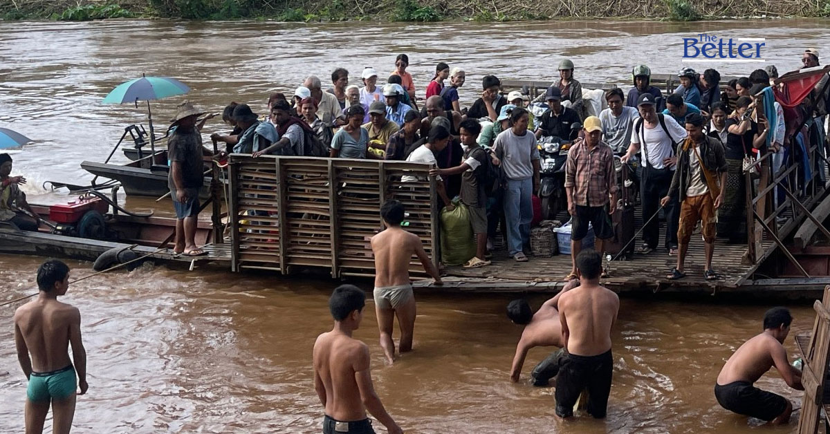 Photo - ภาพนี้ถ่ายเมื่อวันที่ 8 กรกฎาคม 2567 แสดงให้เห็นผู้พลัดถิ่นจากเมืองล่าเสี้ยวกำลังข้ามแม่น้ำโดกทาวดี ขณะที่พวกเขาหลบหนีจากบ้านเรือนของตนเอง หลังเกิดการปะทะกันระหว่างกองทัพเมียนมาร์และกองทัพ TNLA ในหมู่บ้านซินอัน ระหว่างลาชิโอและตำบลสีปอว์ ในรัฐชานทางเหนือของเมียนมา นักรบชนกลุ่มน้อยชาวเมียนมาร์กล่าวเมื่อวันที่ 10 กรกฎาคมว่าพวกเขายึดเมืองหนึ่งริมทางหลวงสายหลักเพื่อการค้าไปยังจีนได้ หลังจากเกิดการปะทะกับกองกำลังของคณะทหารเป็นเวลาหลายวัน