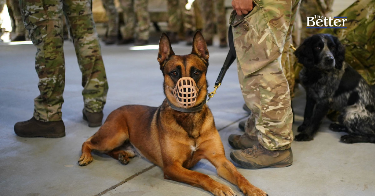 Photo - ภาพถ่ายสุนัขช่วยเหลือในระหว่างการเยี่ยมชมของเจ้าหน้าที่กองกำลังร่วมของรัฐมนตรีกลาโหม จอห์น ฮีลีย์ ของอังกฤษ ที่ค่ายบลัดฮาวด์ในเอปิสโกปี เมืองลิมาสโซล บนเกาะไซปรัสในทะเลเมดิเตอร์เรเนียน เมื่อวันที่ 2 ตุลาคม 2024 กองทัพอังกฤษ "มีส่วนร่วมในความพยายามที่จะป้องกันไม่ให้สถานการณ์ตึงเครียดมากขึ้น" ขณะที่อิหร่านยิงขีปนาวุธถล่มอิสราเอล ฮีลีย์กล่าว (ภาพโดย Yui Mok / POOL / AFP)