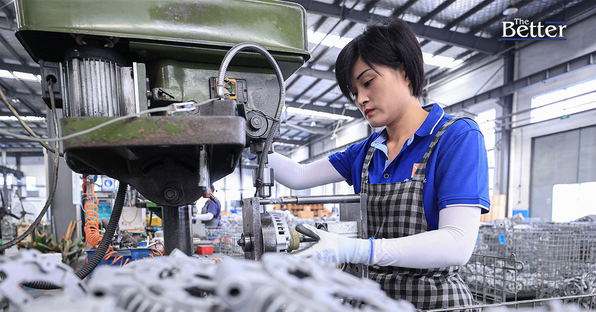 Photo - พนักงานทำงานในโรงงานที่ผลิตชิ้นส่วนรถยนต์ในเมืองเหลียนหยุนกั่ง มณฑลเจียงซู ทางตะวันออกของจีน เมื่อวันที่ 8 ตุลาคม 2024 (ภาพโดย STRINGER / AFP) / CHINA OUT