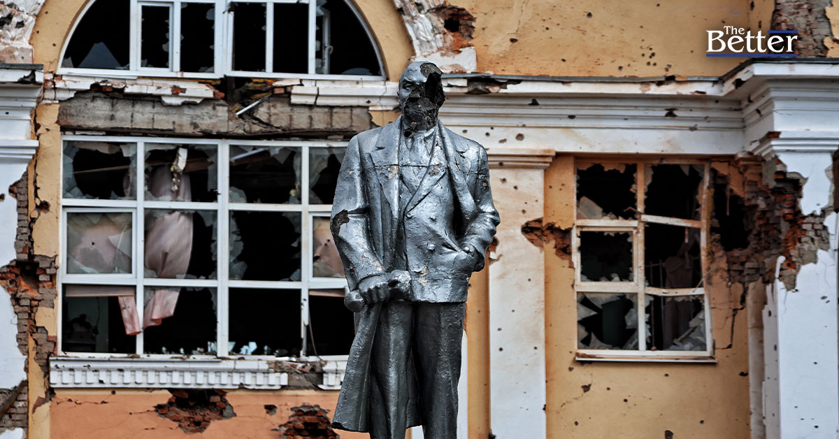 Photo - (TOPSHOT) - ภาพถ่ายนี้ถ่ายเมื่อวันที่ 16 สิงหาคม 2024 ระหว่างการทัวร์สื่อที่จัดโดยยูเครน แสดงให้เห็นรูปปั้นของวลาดิมีร์ เลนิน ผู้ก่อตั้งสหภาพโซเวียตที่ได้รับความเสียหายในเมืองซูดจาของรัสเซียที่อยู่ภายใต้การควบคุมของยูเครน ในภูมิภาคเคิร์สก์ ท่ามกลางการรุกรานยูเครนของรัสเซีย (ภาพโดย Yan DOBRONOSOV / AFP)