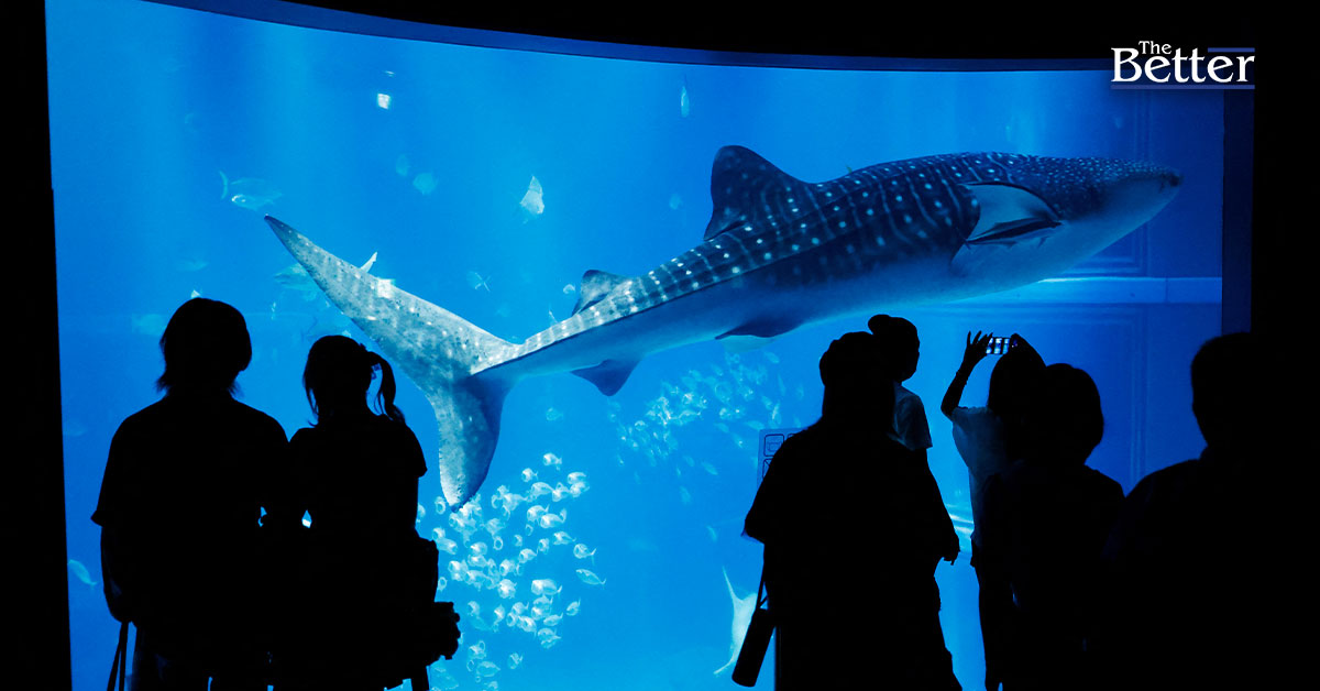ภาพประกอบข่าวไม่เกี่ยวกับเนื้อหา (ผู้คนเฝ้าดูฉลามวาฬว่ายน้ำผ่านไปขณะที่พวกเขาเยี่ยมชมพิพิธภัณฑ์สัตว์น้ำไคยูกังของโอซาก้าในโอซาก้า เมื่อวันที่ 17 สิงหาคม 2021 ภาพโดย David GANNON / AFP)