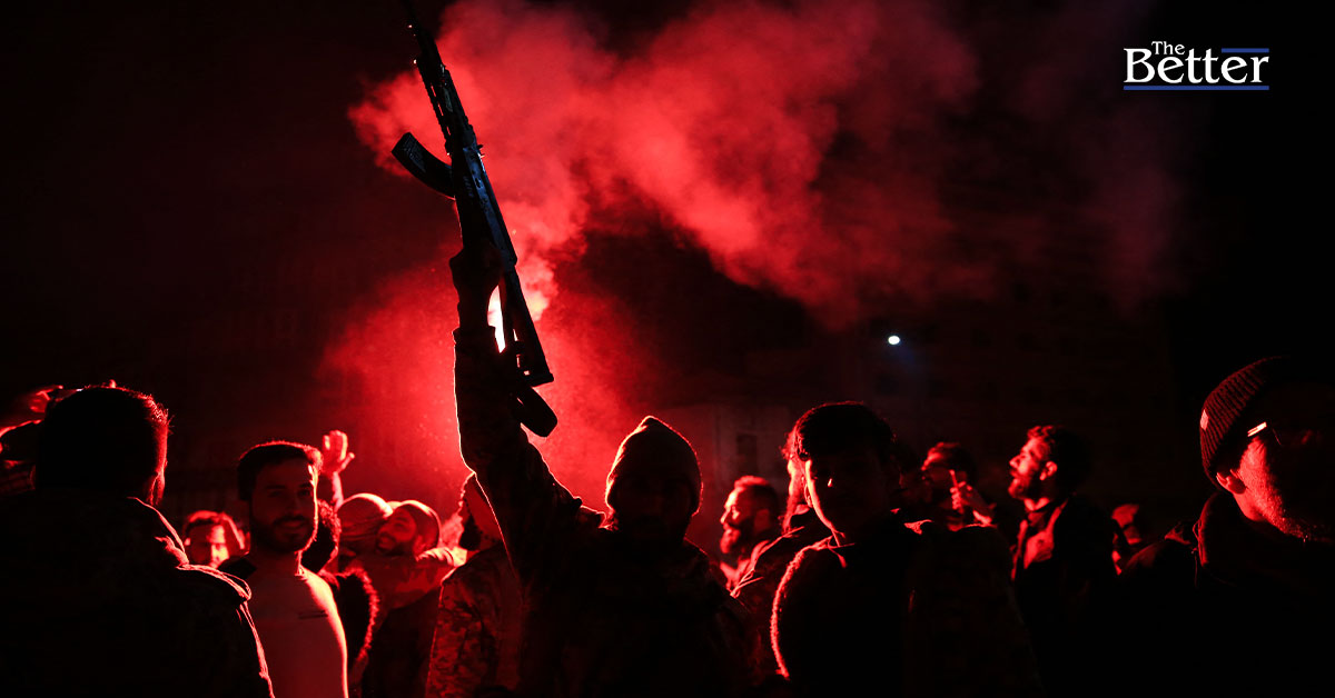 Photo - TOPSHOT - กองกำลังกบฏยิงขึ้นฟ้าขณะเฉลิมฉลองในเมืองโฮมส์ ทางตอนกลางของซีเรียเมื่อช่วงเช้าของวันที่ 8 ธันวาคม 2024 หลังจากที่พวกเขาเข้าสู่เมืองที่สามของซีเรียเมื่อคืนนี้ กลุ่มฮายัต ตาห์รีร์ อัลชาม (HTS) และกลุ่มพันธมิตรต่อต้านรัฐบาลได้รุกคืบอย่างรวดเร็วตั้งแต่วันที่ 27 พฤศจิกายน โดยยึดครองพื้นที่ส่วนใหญ่ของประเทศจากการควบคุมของรัฐบาล รวมถึงเมืองใหญ่ๆ เช่น อเลปโป ฮามา โฮมส์ และกรุงดามัสกัส (ภาพโดย Aref TAMMAWI / AFP)