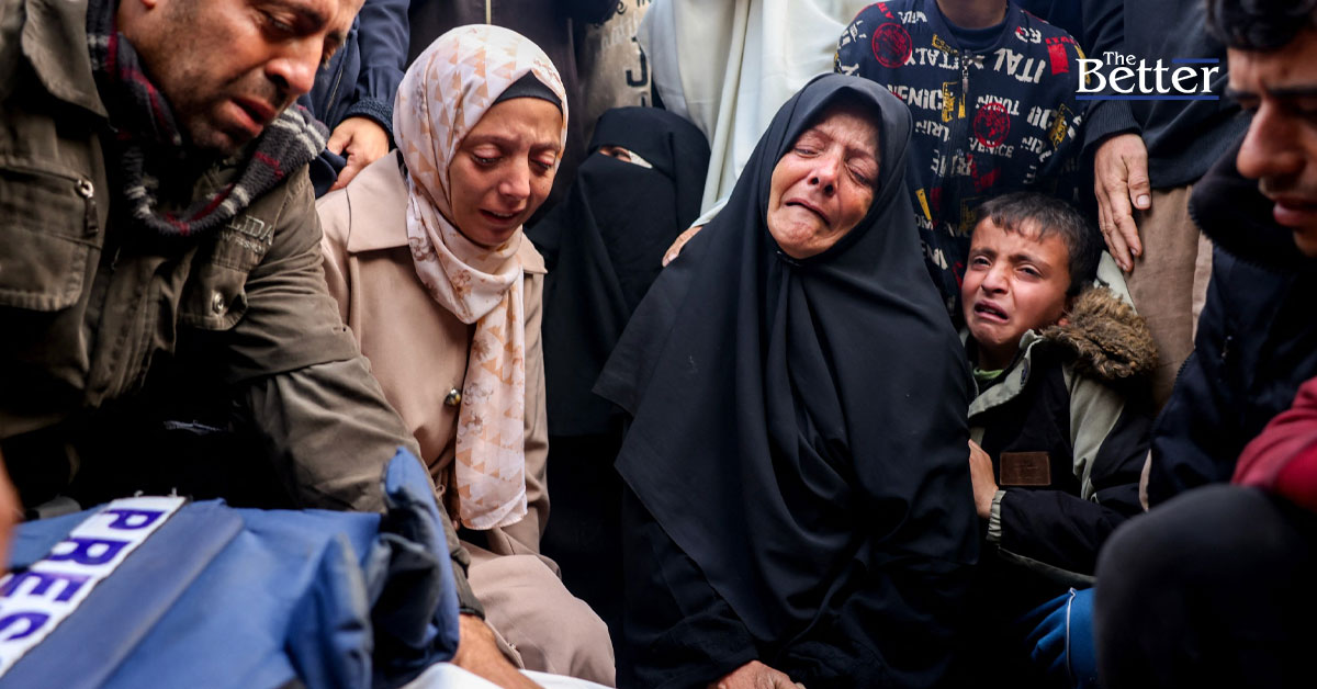 Photo - ครอบครัวและญาติพี่น้องไว้อาลัยให้กับร่างของ อาฮ์เม็ด อัล ชายะฮ์ นักข่าวชาวปาเลสไตน์ ซึ่งสวมเสื้อกั๊กสำหรับนักข่าว เสียชีวิตระหว่างการโจมตีของอิสราเอลเมื่อคืนก่อน ณ โรงพยาบาลนัสเซอร์ ในฉนวนกาซาตอนใต้ เมื่อวันที่ 16 มกราคม 2025 ท่ามกลางสงครามที่ยังคงดำเนินต่อไปในดินแดนปาเลสไตน์ระหว่างอิสราเอลและกลุ่มฮามาส (ภาพโดย BASHAR TALEB / AFP)