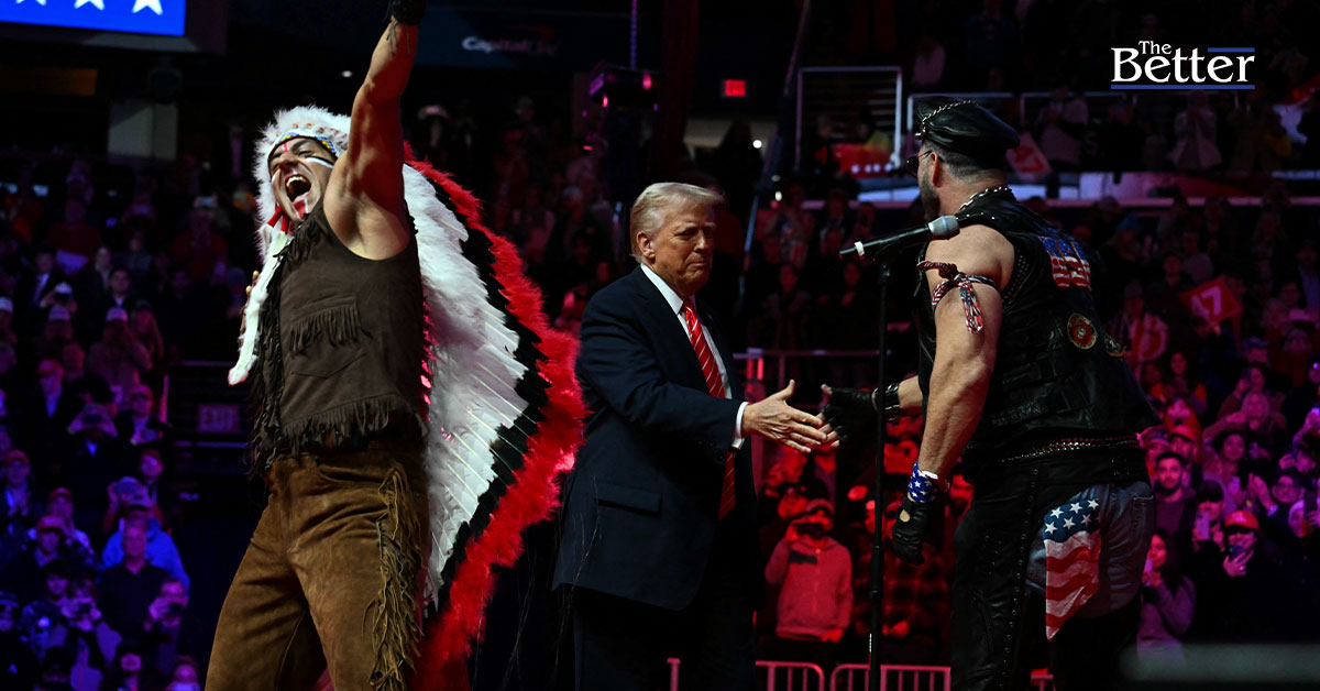 Photo - โดนัลด์ ทรัมป์ ว่าที่ประธานาธิบดีสหรัฐฯ กล่าวขอบคุณวง Village People หลังจากที่พวกเขาแสดงในการชุมนุมฉลองชัยชนะ MAGA ที่ Capital One Arena ในกรุงวอชิงตัน ดี.ซี. เมื่อวันที่ 19 มกราคม 2025 หนึ่งวันก่อนพิธีสาบานตนเข้ารับตำแหน่งของเขา (ภาพโดย Jim WATSON / AFP)