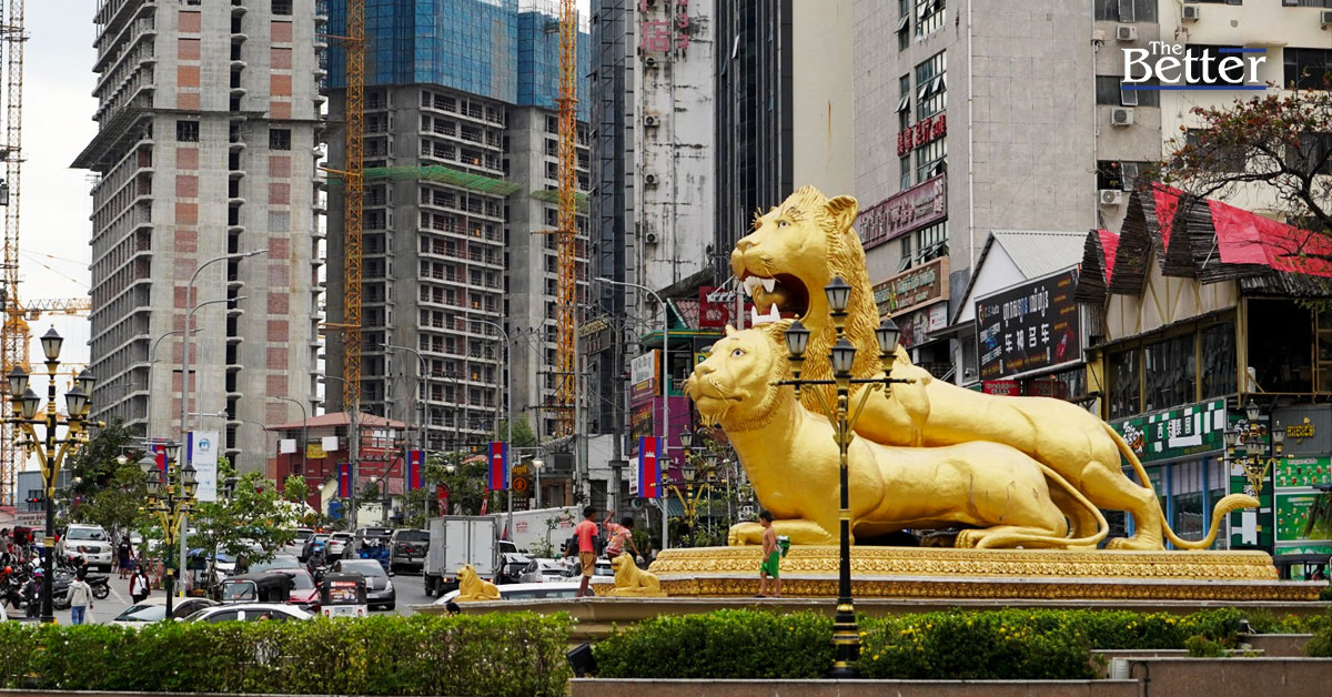 Photo - ภาพนี้แสดงอาคารที่กำลังอยู่ระหว่างการก่อสร้างใกล้กับวงเวียนสิงห์คู่ในเมืองท่าสีหนุวิลล์ทางตอนใต้ของกัมพูชา เมื่อวันที่ 16 ธันวาคม 2024 (ภาพโดย YARN SOVEIT / AFP)