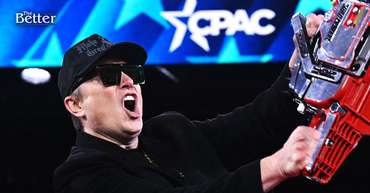 Photo -อีลอน มัสก์ (ซ้าย) ถือเลื่อยยนต์ร่วมกับประธานาธิบดีคาเวียร์ ไมเลแห่งอาร์เจนตินา ระหว่างการประชุม Conservative Political Action Conference ประจำปี (CPAC) ที่ Gaylord National Resort & Convention Center ใน National Harbor ใน Oxon Hill รัฐแมริแลนด์ เมื่อวันที่ 20 กุมภาพันธ์ 2025 เลื่อยยนต์ดังกล่าวเป็นของขวัญที่ประธานาธิบดีฮาเบียร์ มิเลแห่งอาร์เจนตินามอบให้กับอีลอน มัสก์ (ภาพโดย SAUL LOEB / AFP)
