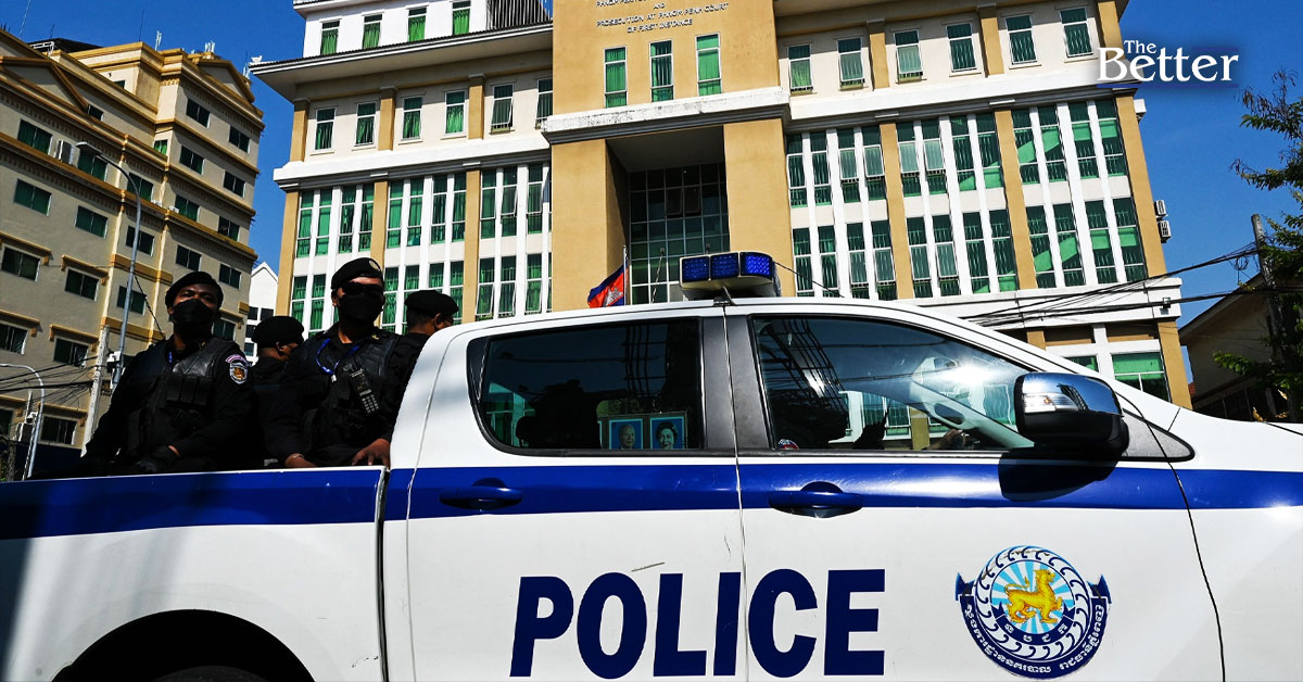 Photo - (ภาพประกอบข่าว) เจ้าหน้าที่ตำรวจกัมพูชานั่งอยู่ในรถสายตรวจหน้าศาลเทศบาลกรุงพนมเปญ เมื่อวันที่ 3 มีนาคม 2023