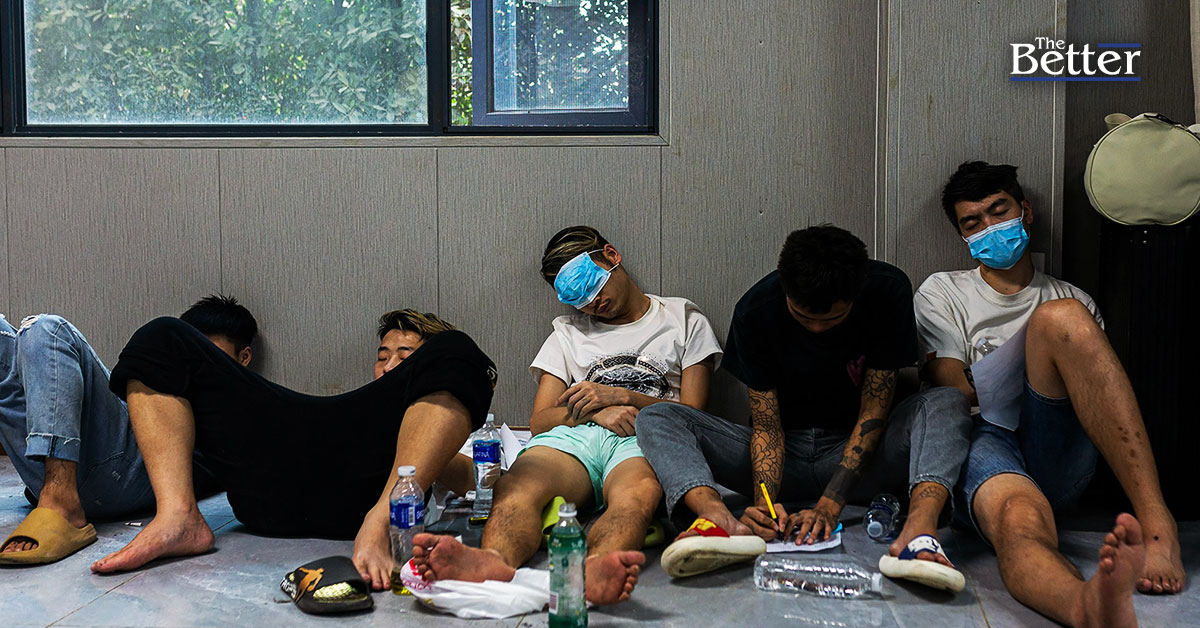 Photo - พนักงานศูนย์ฉ้อโกงและเหยื่อกำลังพักผ่อนระหว่างปฏิบัติการปราบปรามกิจกรรมผิดกฎหมายของกองกำลังรักษาชายแดนกะเหรี่ยง (BGF) ในเมืองชเวก๊กโกทางตะวันออกของเมียนมาร์ เมื่อวันที่ 14 กุมภาพันธ์ 2025 (ภาพโดย AFP)