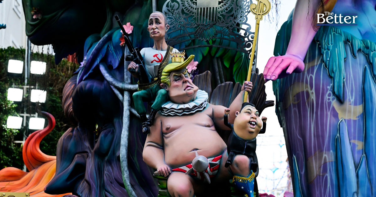 Photo - TOPSHOT - รูปปั้นกระดาษแข็งที่เรียกว่า "นินอตส์" ซึ่งเป็นรูปผู้นำเกาหลีเหนือ คิมจองอึน นั่งอยู่บนตักของประธานาธิบดีโดนัลด์ ทรัมป์แห่งสหรัฐอเมริกา และประธานาธิบดีวลาดิมีร์ ปูตินแห่งรัสเซีย (ด้านบน) ถูกจัดแสดงระหว่างเทศกาลฟัลลาสในบาเลนเซีย เมื่อวันที่ 16 มีนาคม 2025 (ภาพถ่ายโดย JOSE JORDAN / STR / AFP)