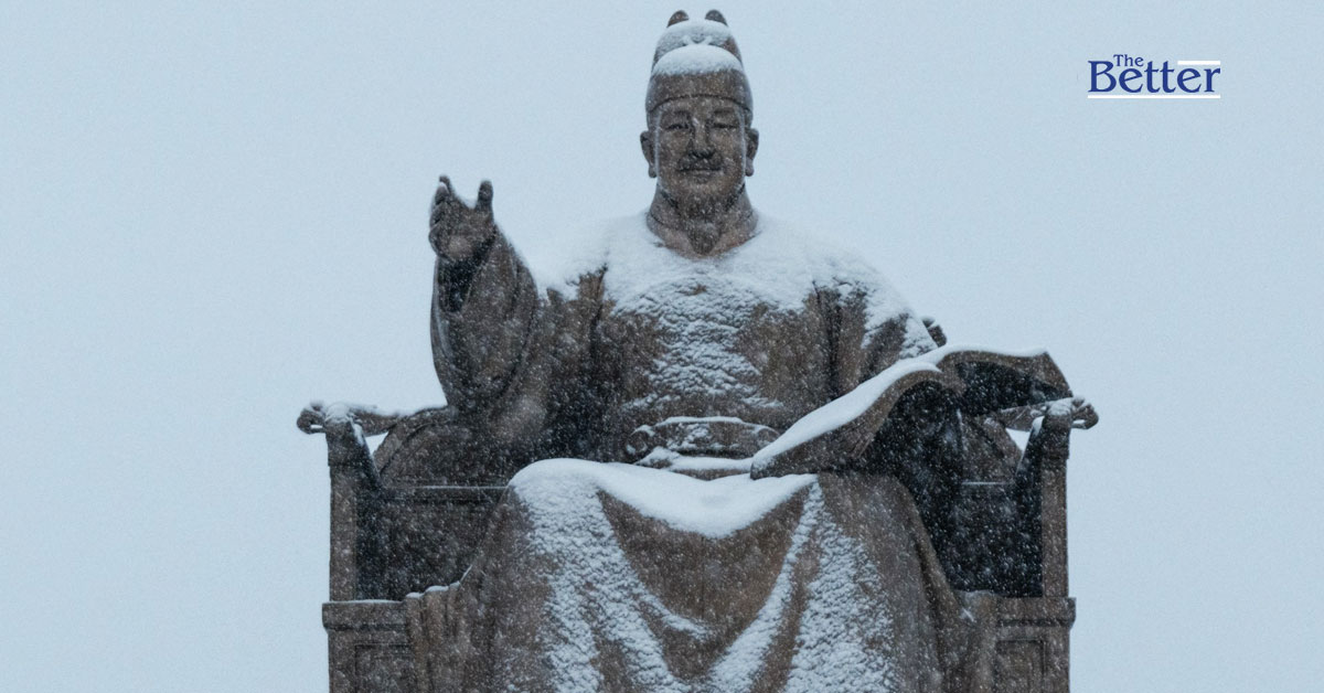 Photo - (ภาพประกอบข่าว) รูปปั้นพระเจ้าเซจงมหาราชแห่งเกาหลีใต้ ถูกปกคลุมไปด้วยหิมะในกรุงโซลเมื่อวันที่ 18 มีนาคม 2568 (ภาพโดย Yasuyoshi CHIBA / AFP)
