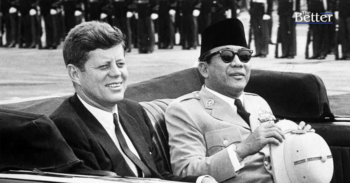 Photo - ประธานาธิบดีจอห์น เอฟ. เคนเนดี กับประธานาธิบดีอาเหม็ด ซูการ์โน แห่งอินโดนีเซีย 24 เมษายน 1961(Abbie Rowe. White House Photographs. John F. Kennedy Presidential Library and Museum, Boston)