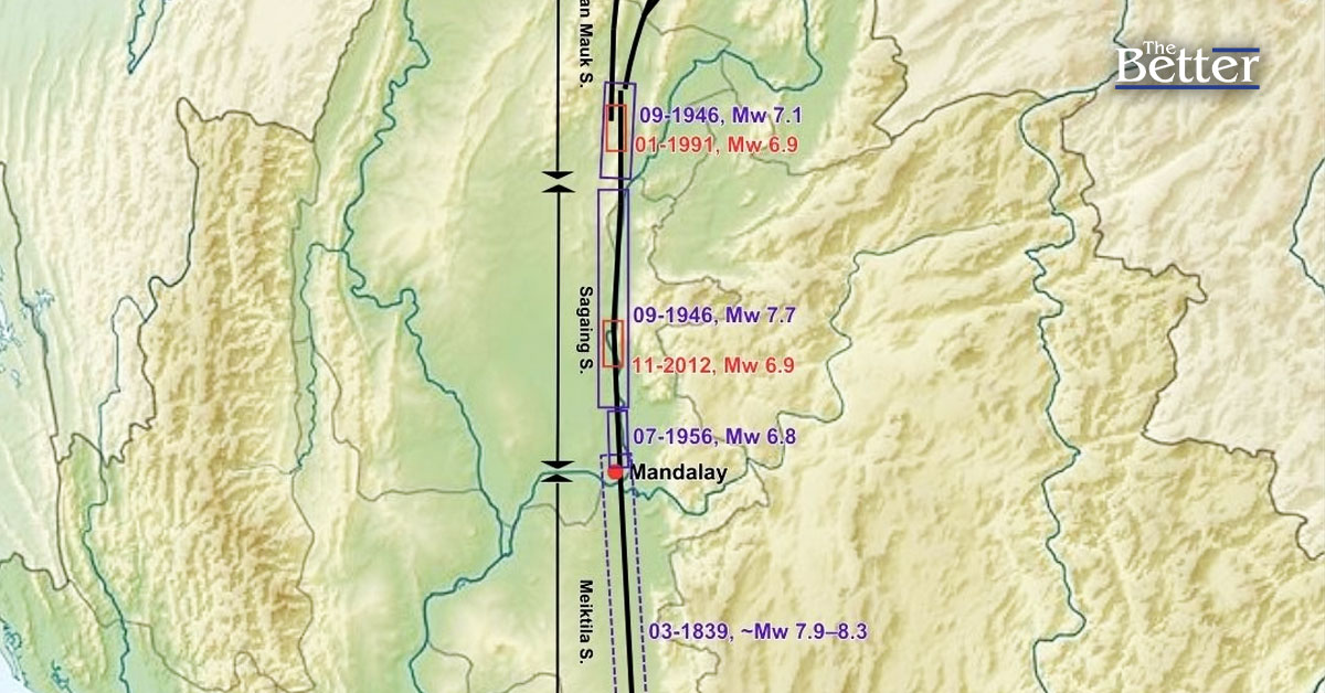 Photo - Sagaing Fault with annotated segments and earthquake rupture lengths. An adaptation of the figure in Wang et. al (2014). Dora the Axe-plorer / CC BY-SA 4.0