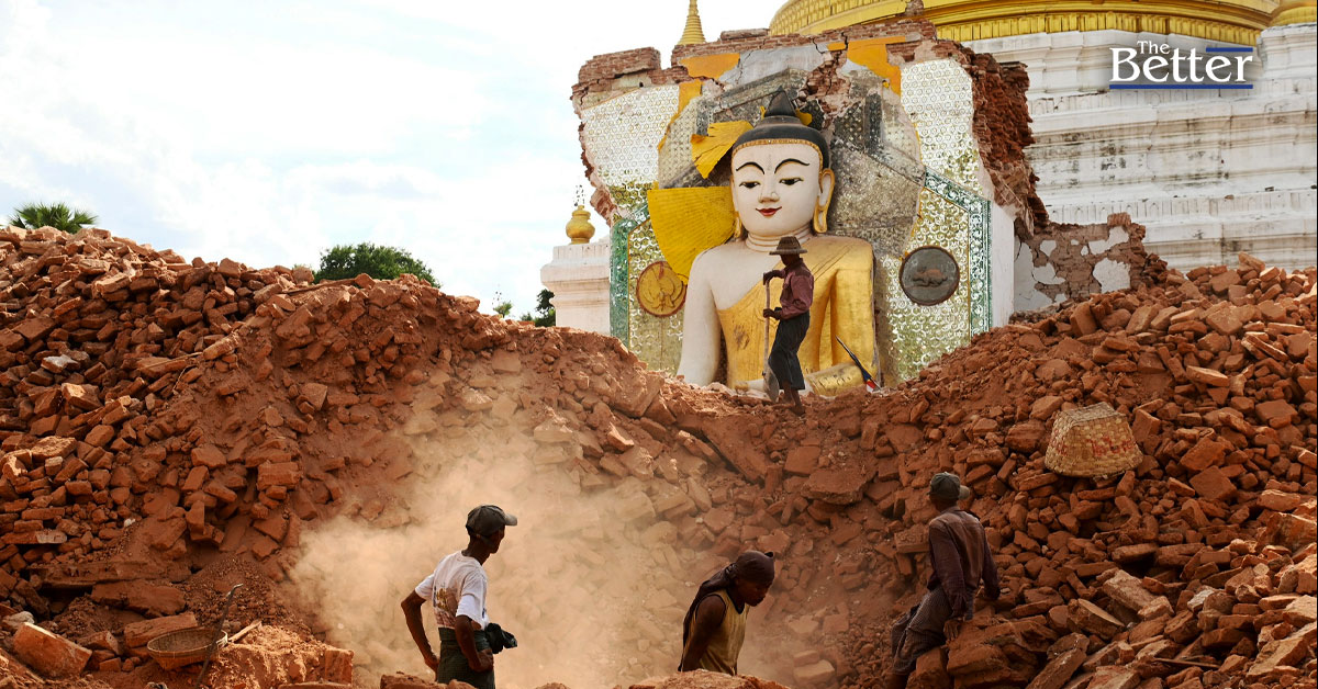 Photo - ผู้คนกำลังเก็บกวาดเศษซากพระพุทธรูปที่เสียหายที่เจดีย์โลกสรภู ในเมืองอังวะ ชานเมืองมัณฑะเลย์ เมื่อวันที่ 12 เมษายน 2025 หลังจากเกิดแผ่นดินไหวรุนแรงเมื่อวันที่ 28 มีนาคม แผ่นดินไหวระดับ 7.7 ริกเตอร์เมื่อวันที่ 28 มีนาคม ส่งผลให้อาคารต่างๆ ทั่วเมียนมาร์พังราบเป็นหน้ากลอง คร่าชีวิตผู้คนไปกว่า 3,400 ราย และทำให้ผู้คนอีกหลายพันคนต้องไร้ที่อยู่อาศัย (ภาพโดย Sai Aung MAIN / AFP)
