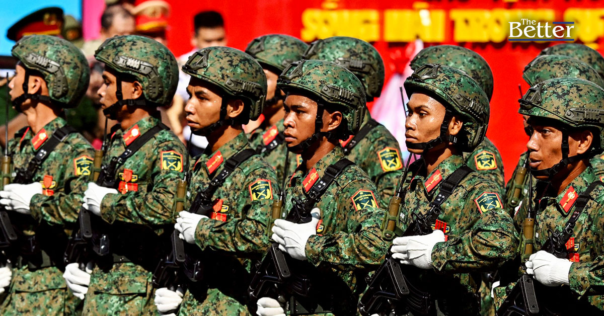 Photo - ทหารเวียดนามเดินขบวนระหว่างการซ้อมขบวนพาเหรดเพื่อเฉลิมฉลองครบรอบ 50 ปีของการพิชิตนครไซ่ง่อนและสิ้นสุดสงครามเวียดนามในนครโฮจิมินห์ (เดิมคือนครไซ่ง่อน) เมื่อวันที่ 27 เมษายน 2025 (ภาพโดย Nhac NGUYEN / AFP)