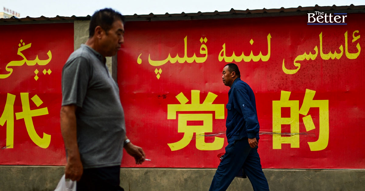 Photo - ภาพนี้ถ่ายเมื่อวันที่ 18 กรกฎาคม 2023 แสดงให้เห็นผู้คนเดินผ่านป้ายโฆษณาชวนเชื่อทางการเมืองในอำเภอซาเชอ หรือยาร์กันต์ ในเขตปกครองตนเองซินเจียงทางตะวันตกเฉียงเหนือของจีน (ภาพโดย Pedro PARDO / AFP)